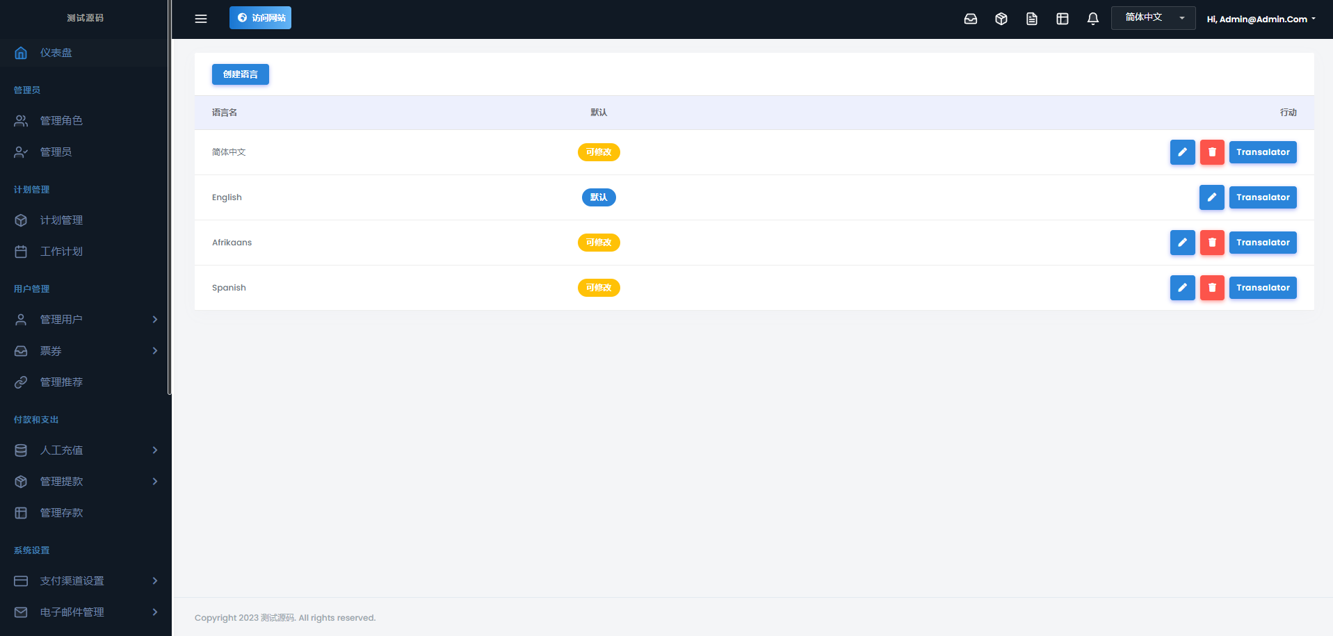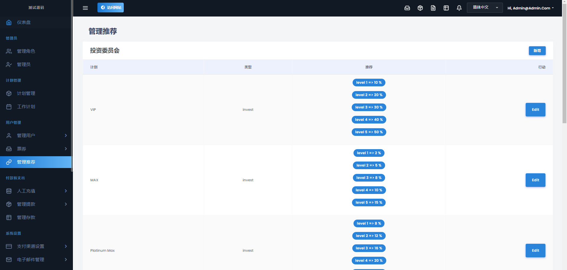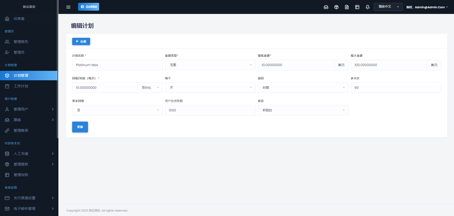 admin 微盘理财 多语言海外投资系统/PHP投资理财平台 程序特色:极致性能、自适应、搜索引擎优化友好、时事通讯订阅、页面生成器、16+ 支付网关、计划管理、内容管理系统、电子邮件通知、注册奖励、多级推荐系统、电子邮件管理器、日程管理、多语言、存款和支付管理、支持票、信息仪表板、余额转介、2FA认证等多种功能