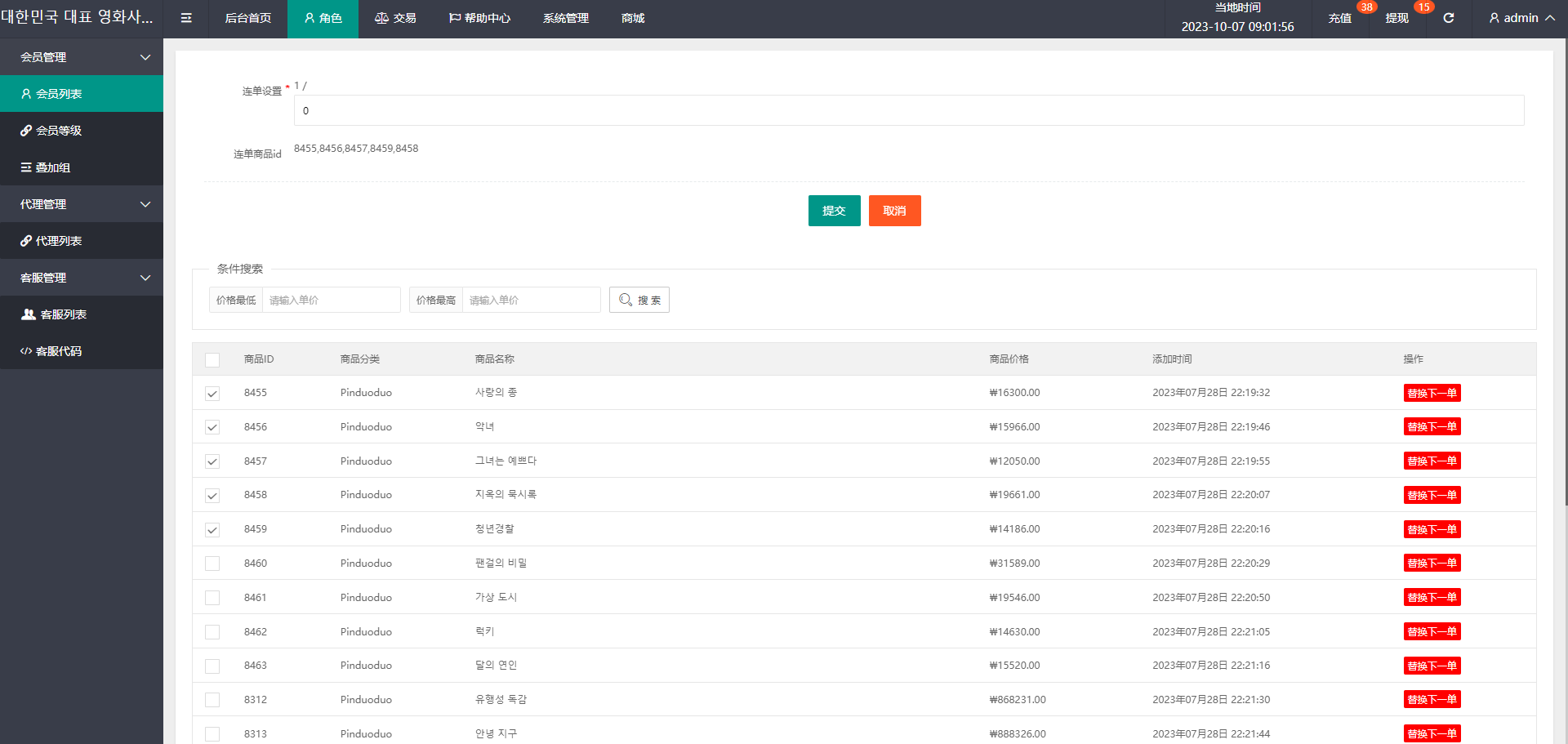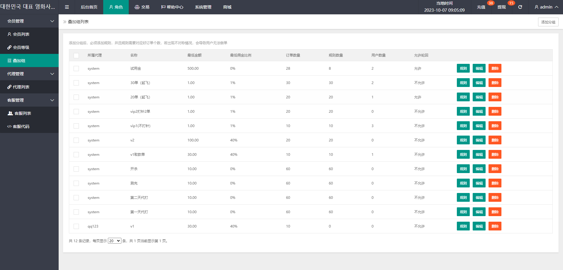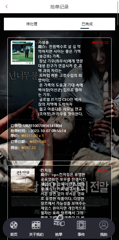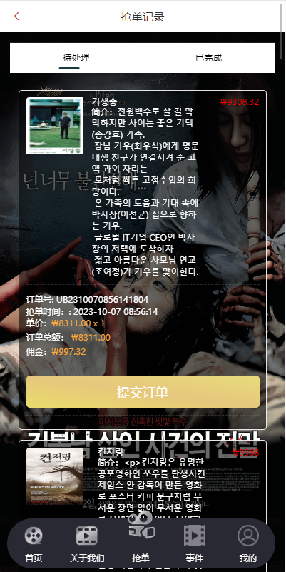admin 商城刷单 定制版海外电影抢单刷单系统/韩国电影抢单/连单/分组杀 系统全新定制,前端韩国定制UI,带15国语言 电影刷单系统,可自动派单,可后端手动派单,连单设置 支持其他国家语言UI定制改造