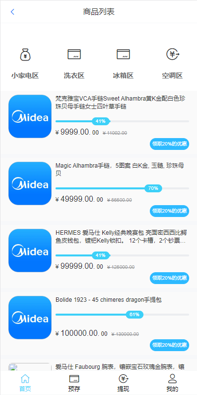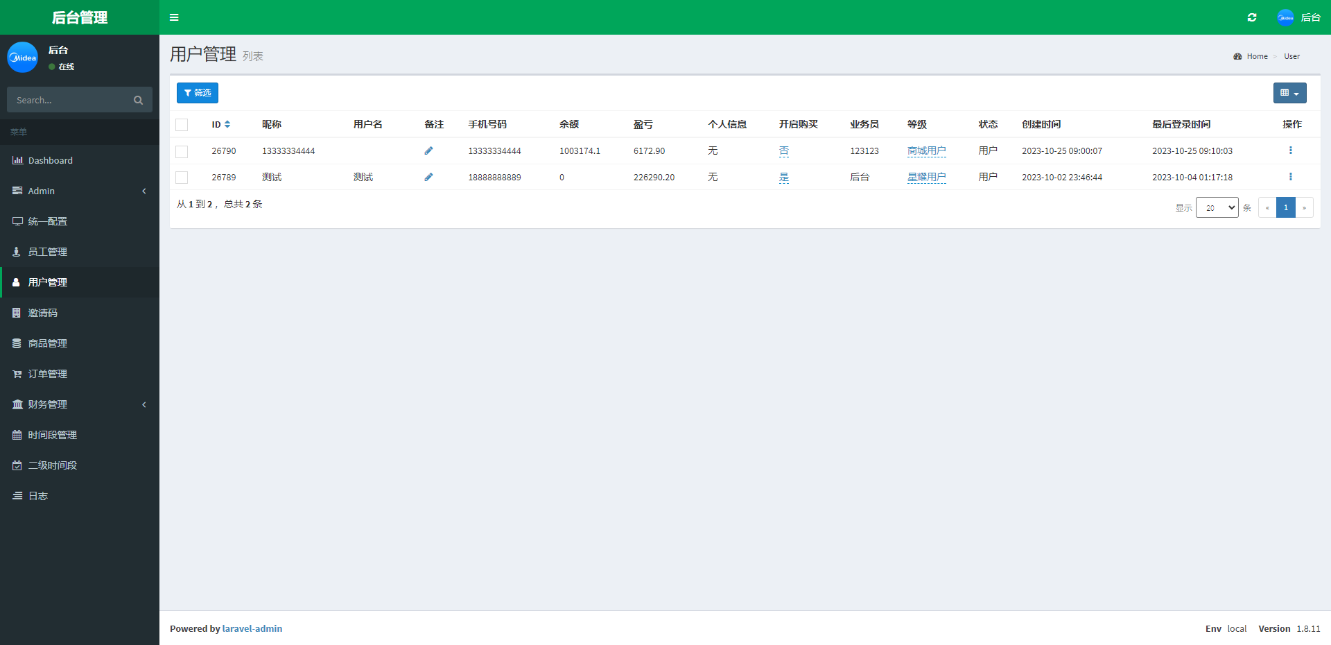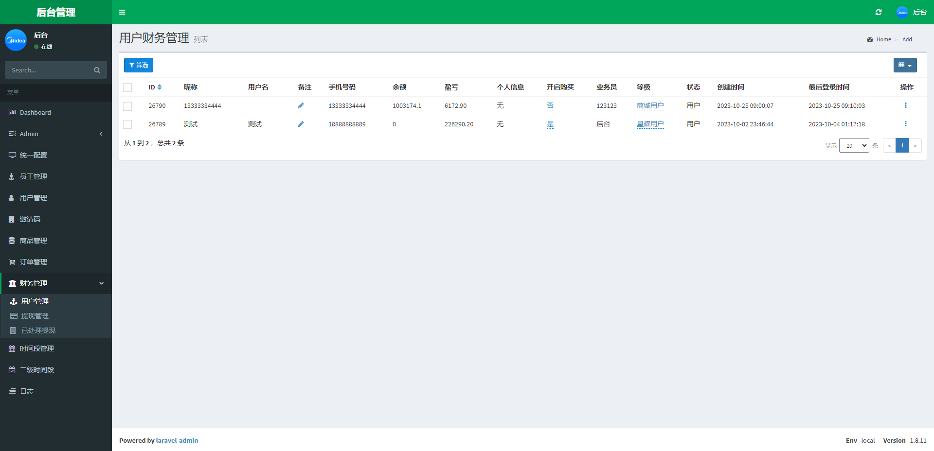 admin 微盘理财 二开版美的优惠卷投资系统/奢饰品投资返利/代理后台 前端UI全新二开,二开美的UI 系统采用Larave框架,系统带权限代理后台 去掉了限制时间段的限制,随时可以购买商品 返利修改为定时五分钟后到账,新增产品分类页面,宣传页面 增加不同分类返利比例不同,增加领取记录,系统完美运行