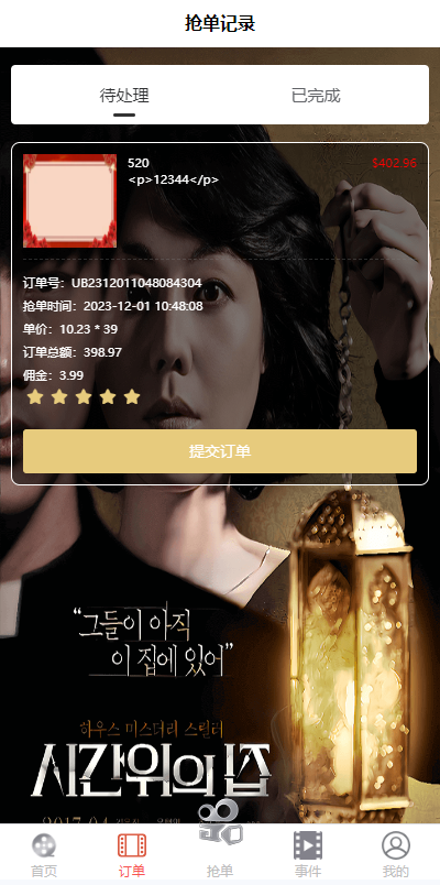 多语言电影抢单刷单系统/卡单/业务员/代理/前端uinapp