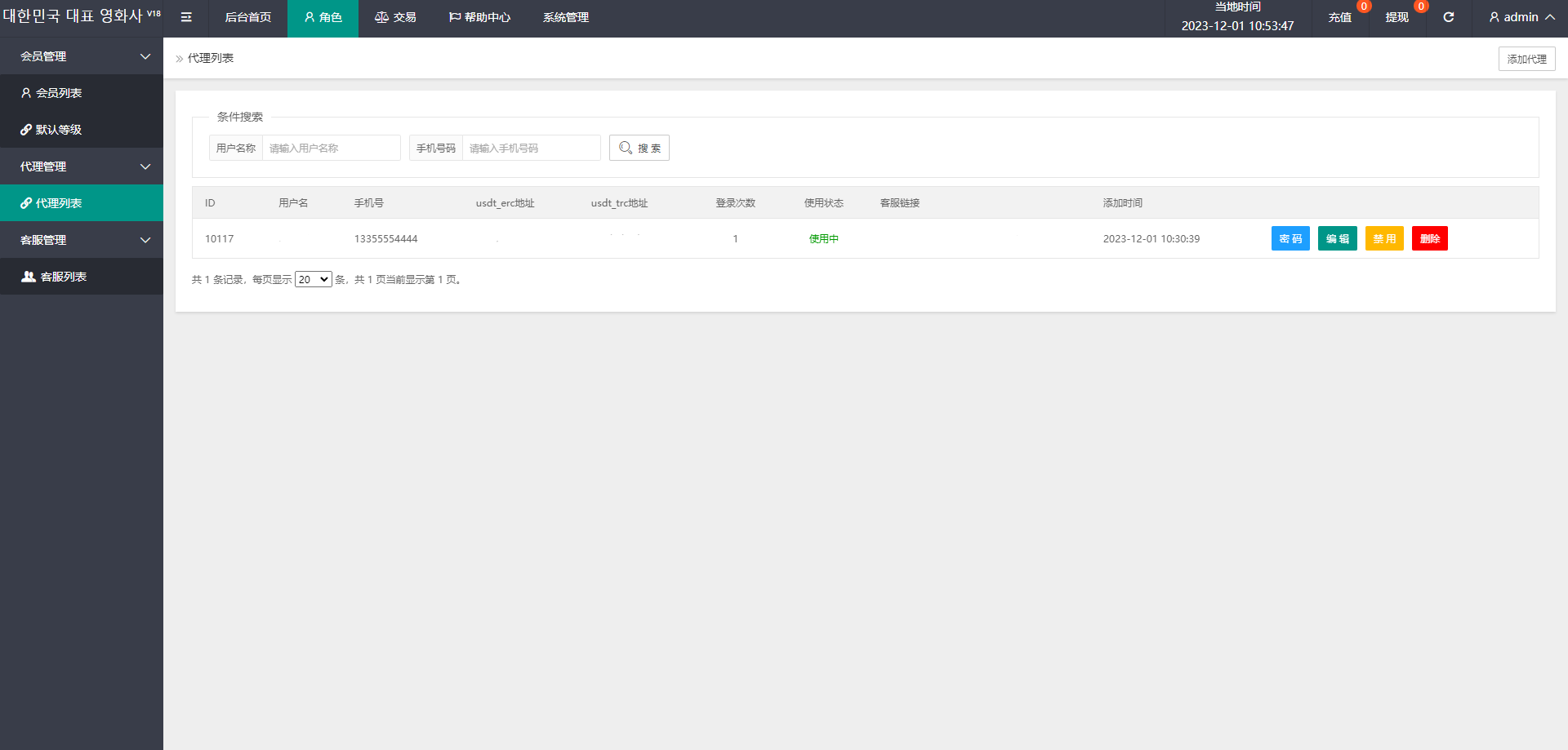 6、充值改为usdt trc和usdt erc方式,提现为银行卡和usdt 如果时代理的用户 代理可以自己审核充值提现订单