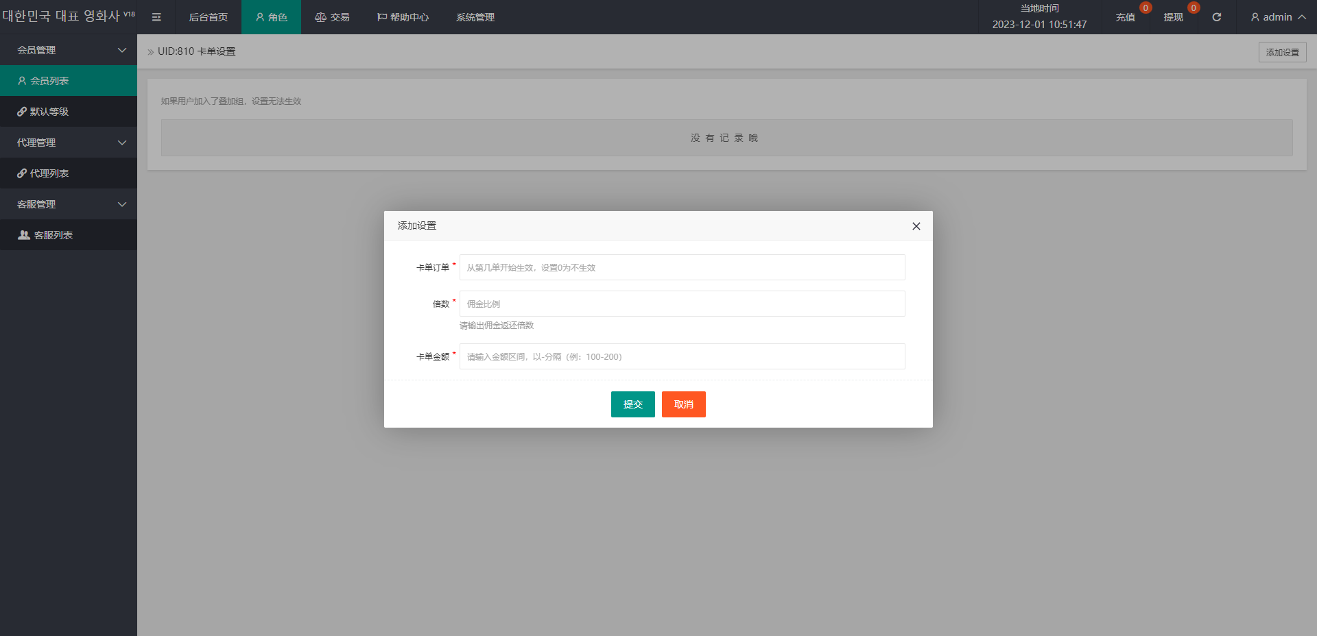 4、增加专门的卡单设置,后台输入第几单开始卡单,输入佣金系数 和要让客户充值的金额区间,那么用户在这个卡单生效后 订单的价格肯定在后台设置的充值的区间之内,可以多个数量