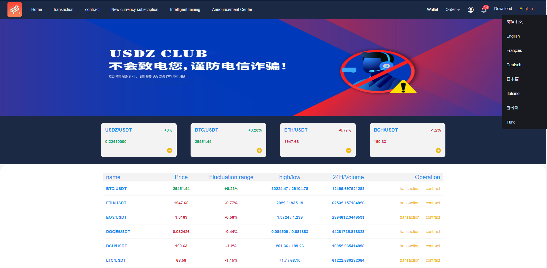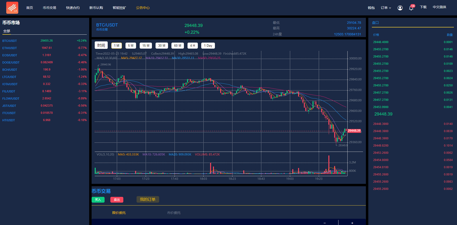 admin 交易所 综合系统 二开优化版区块链交易所/时间盘矿机系统/智能挖矿/币币合约交易 二开优化版区块链交易所/时间盘矿机系统/智能挖矿/币币合约交易 系统基于原版改黑色UI,优化访问速度 修复K线失效问题,系统8种语言,支持币币合约交易、新币申购、智能挖矿等功能