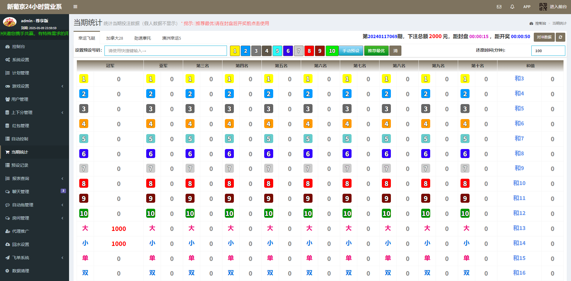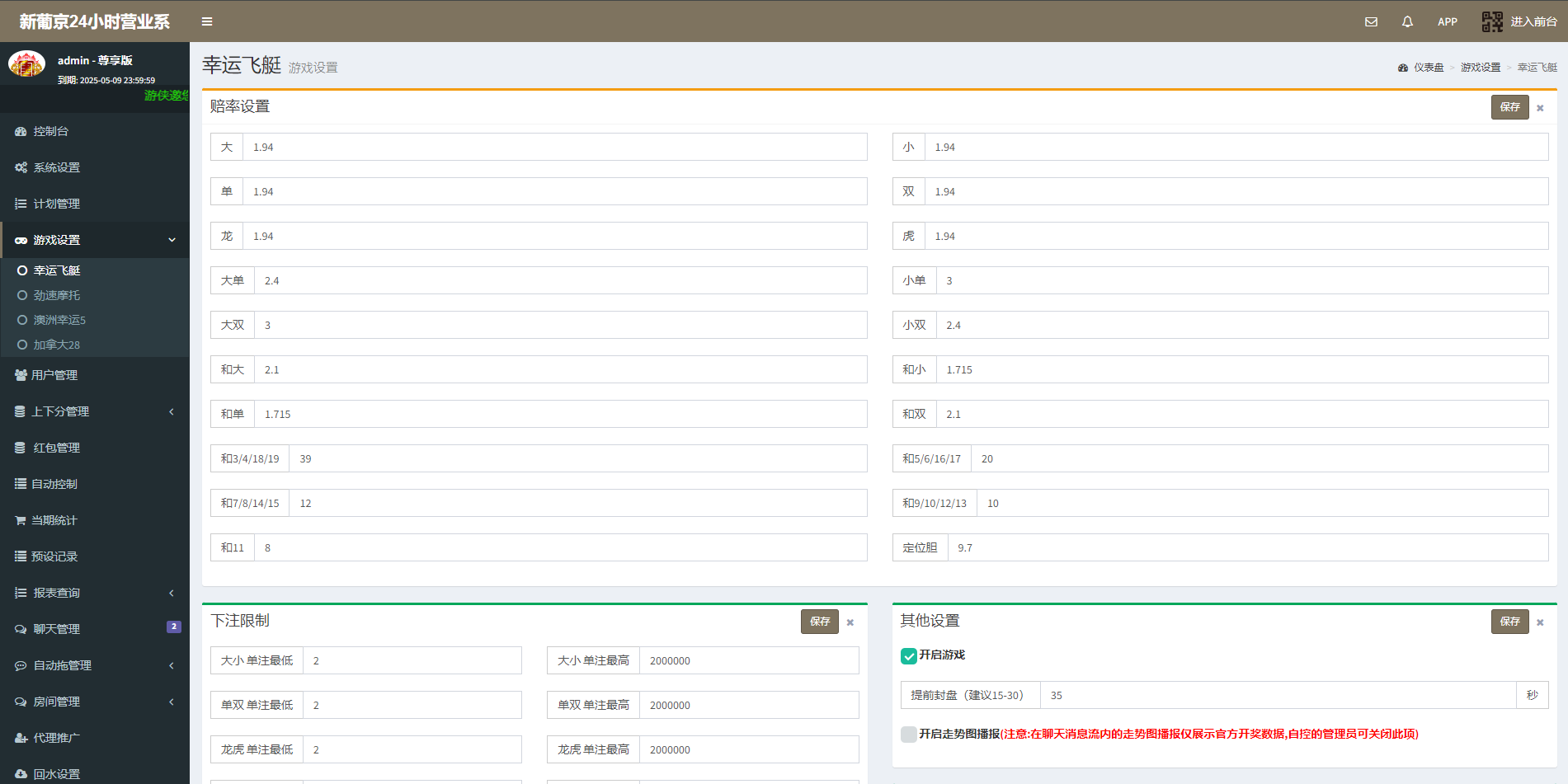 系统二开的功能比较多,可无限开房,智能控制,开奖预设,手动开奖,对接第三方付费采集,具体看图