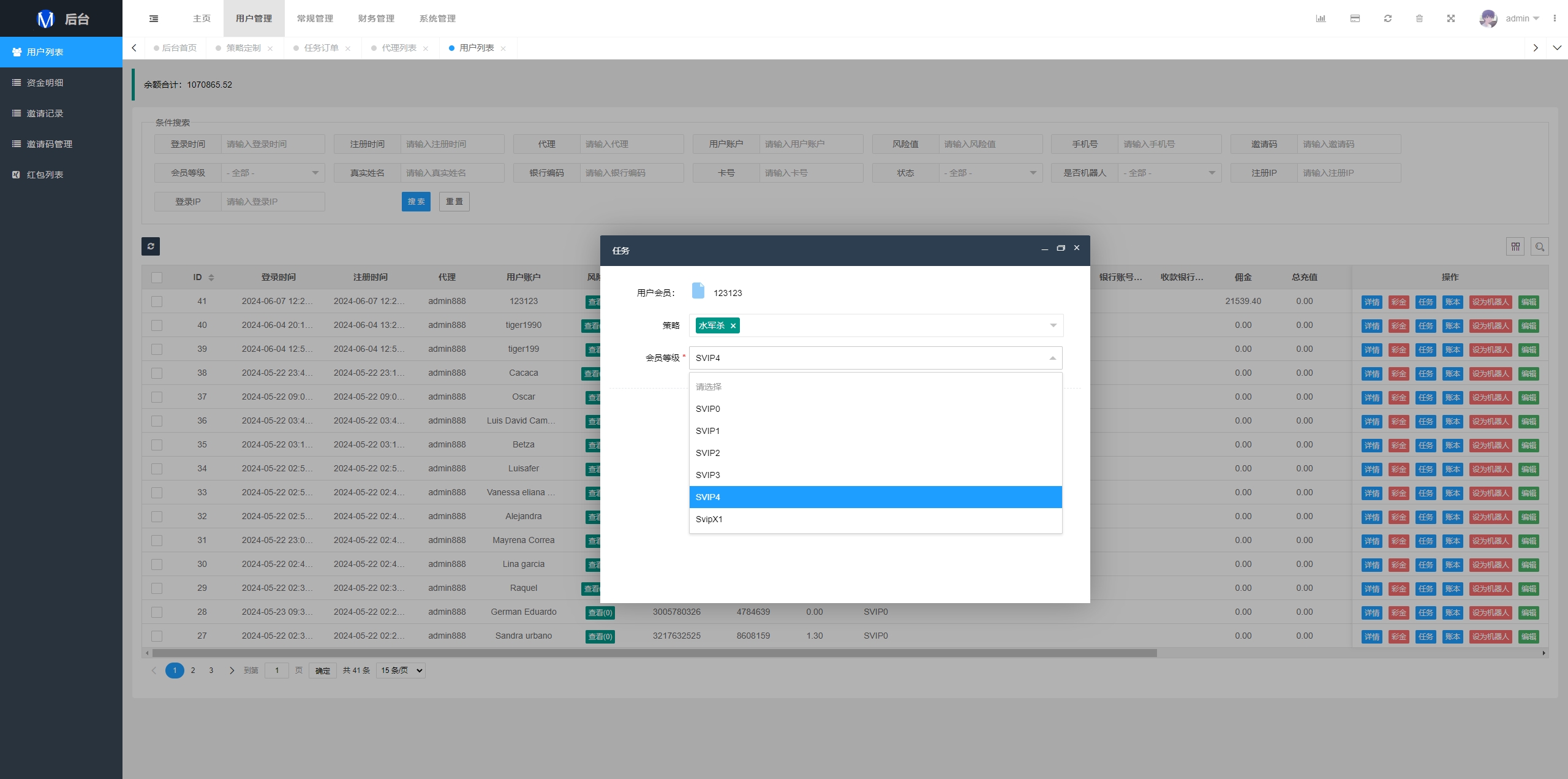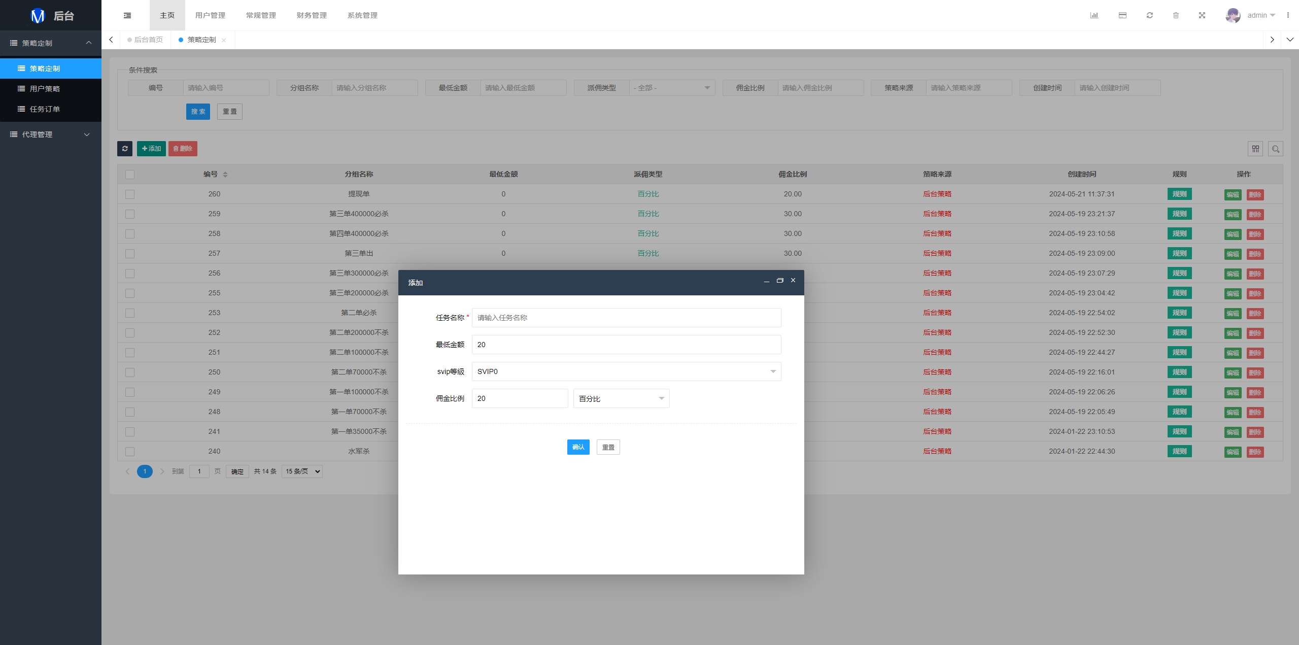 admin 商城刷单 运营版前端uniapp抢单刷单系统/策略组/打针/风险值/36国语言 全新定制多语言刷单系统,前端uniapp开发后端ThinkPHP6,全开源 前端新增38国语言,新增红包赠送领取,风险值风险评估等功能 系统支持策略配置,后台共享代理后台独立,系统基本符合市场需求,单独的代理后台等功能