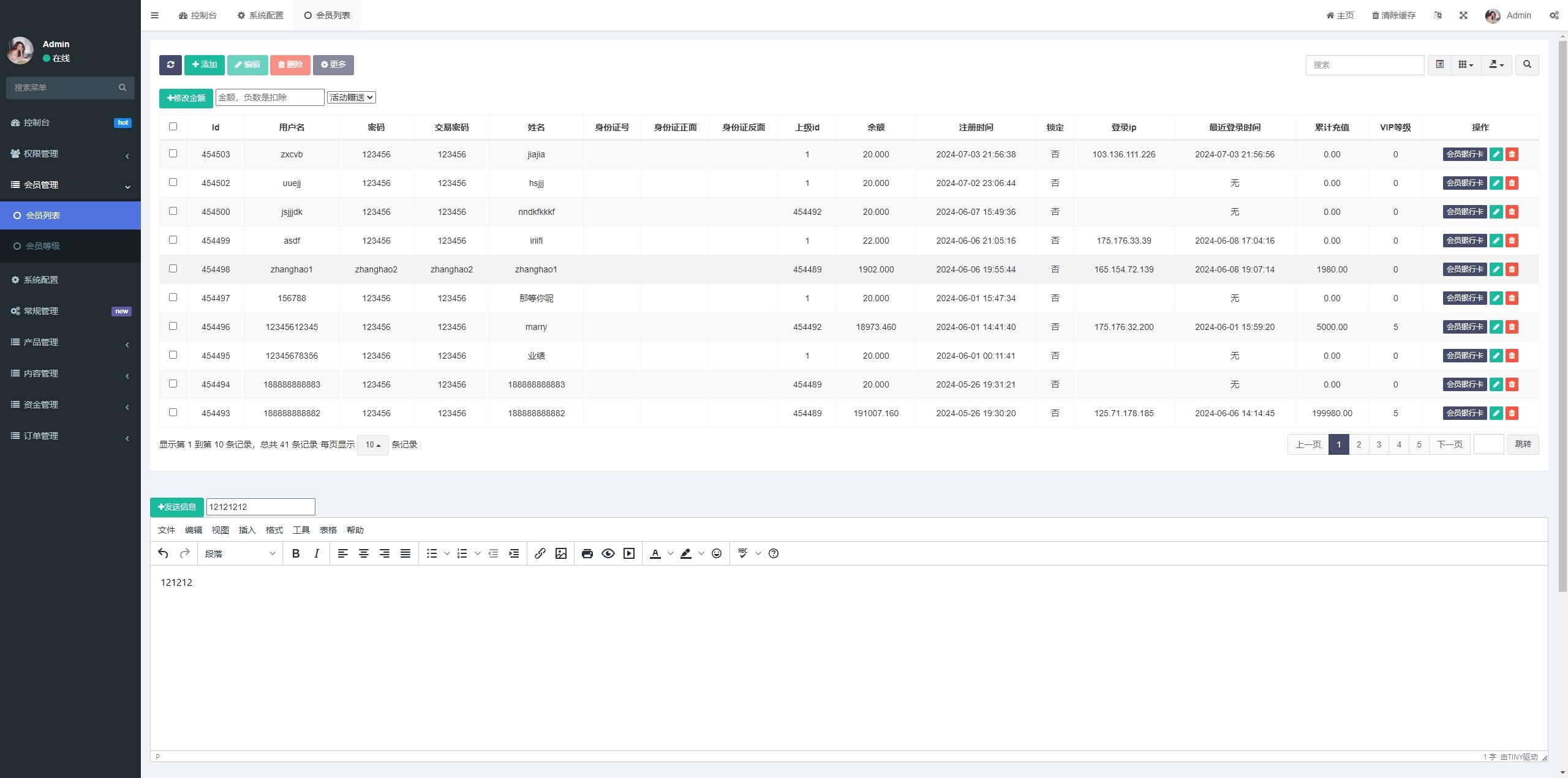 系统功能有签到、信息发送、三级分销等功能