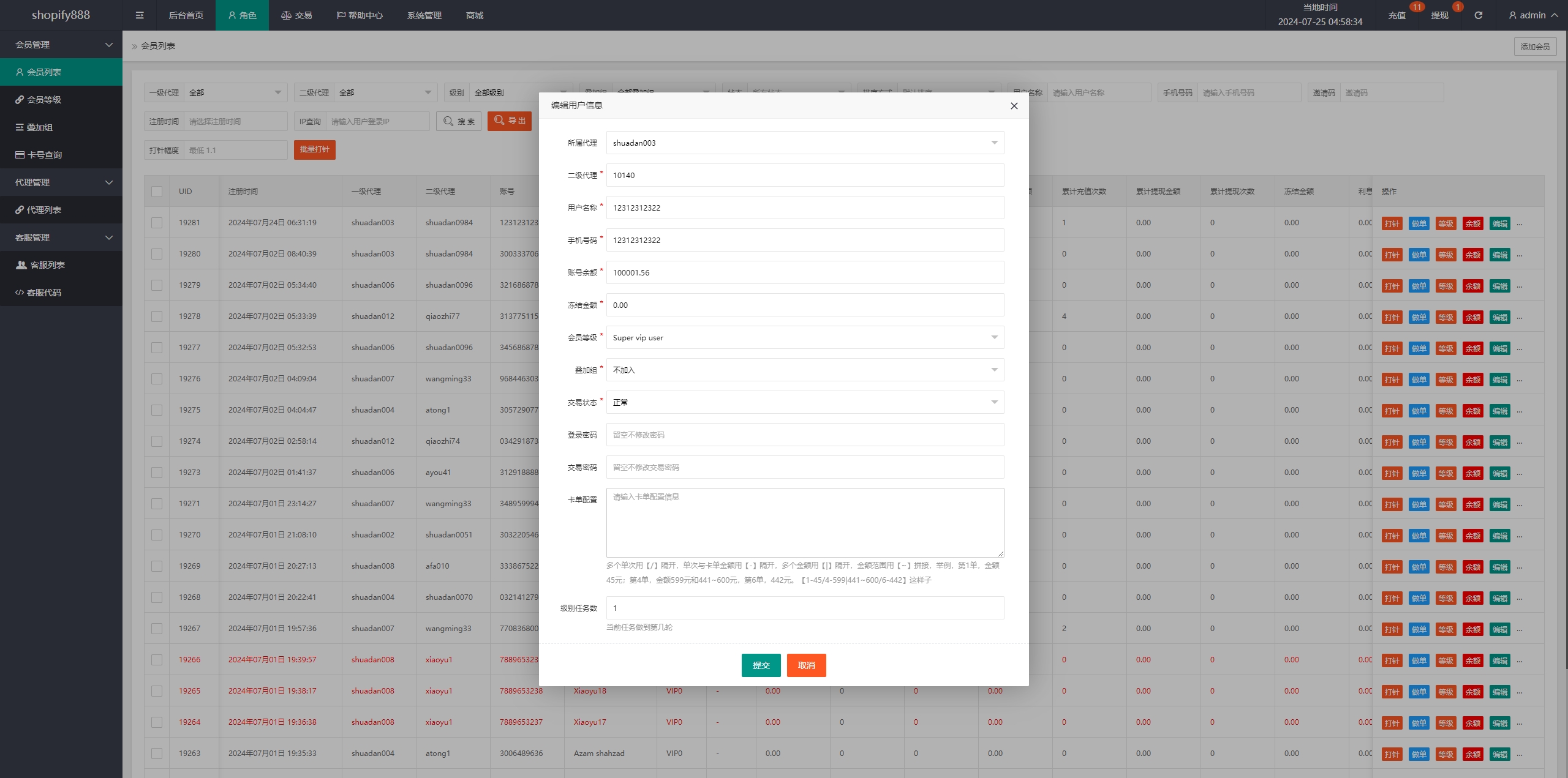 新增手动编辑卡单,会员等级根据余额自动判断进行升级