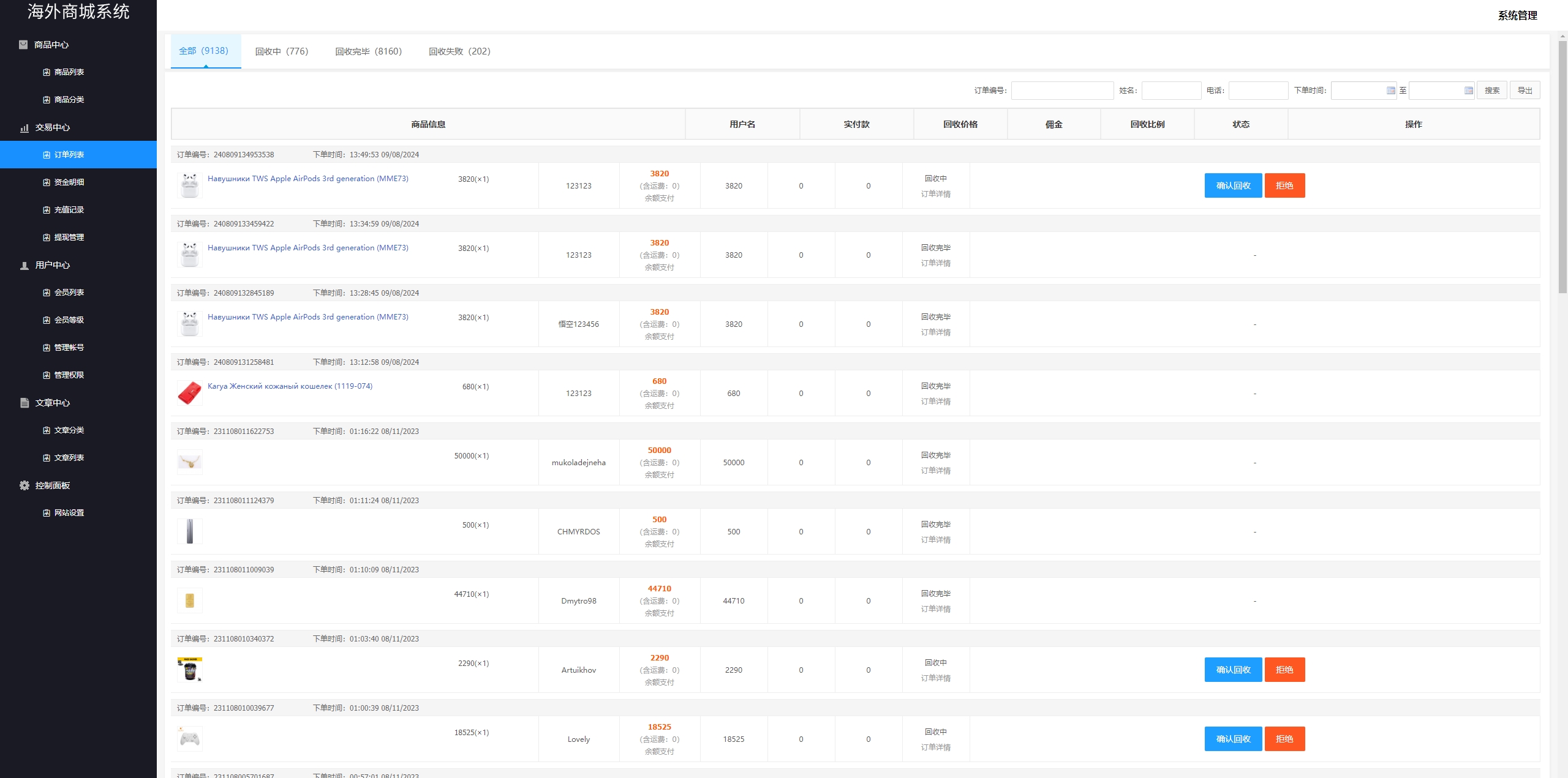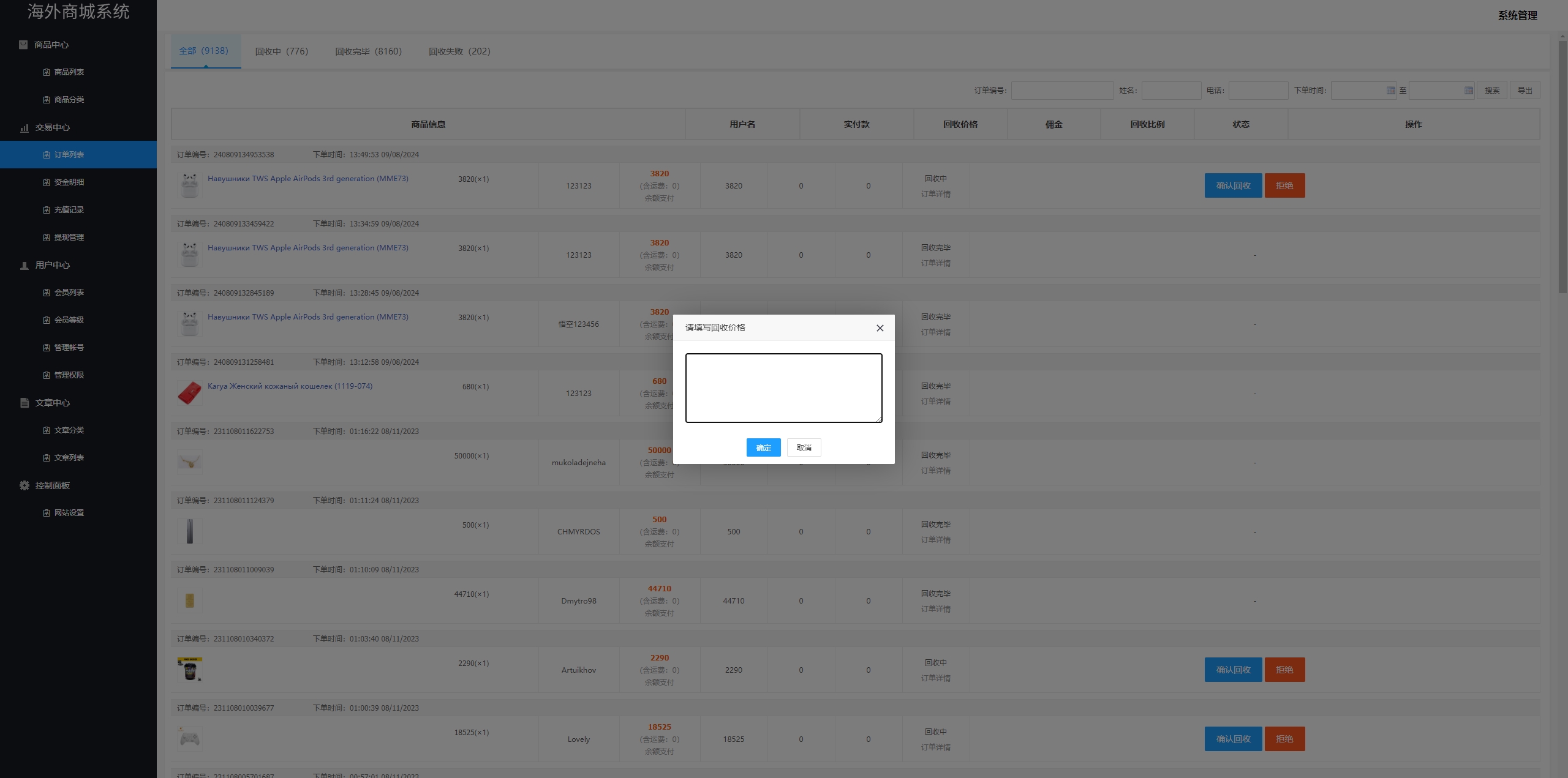 admin 商城刷单 多语言商城回收系统/订单自定义价格回收/海外商城订单回收 前后端UI重新二开定制,前端新增多语言:中文,英文,越南语,波斯语,乌克兰语 用户订单提交回收,后台订单自定义输入回收价格