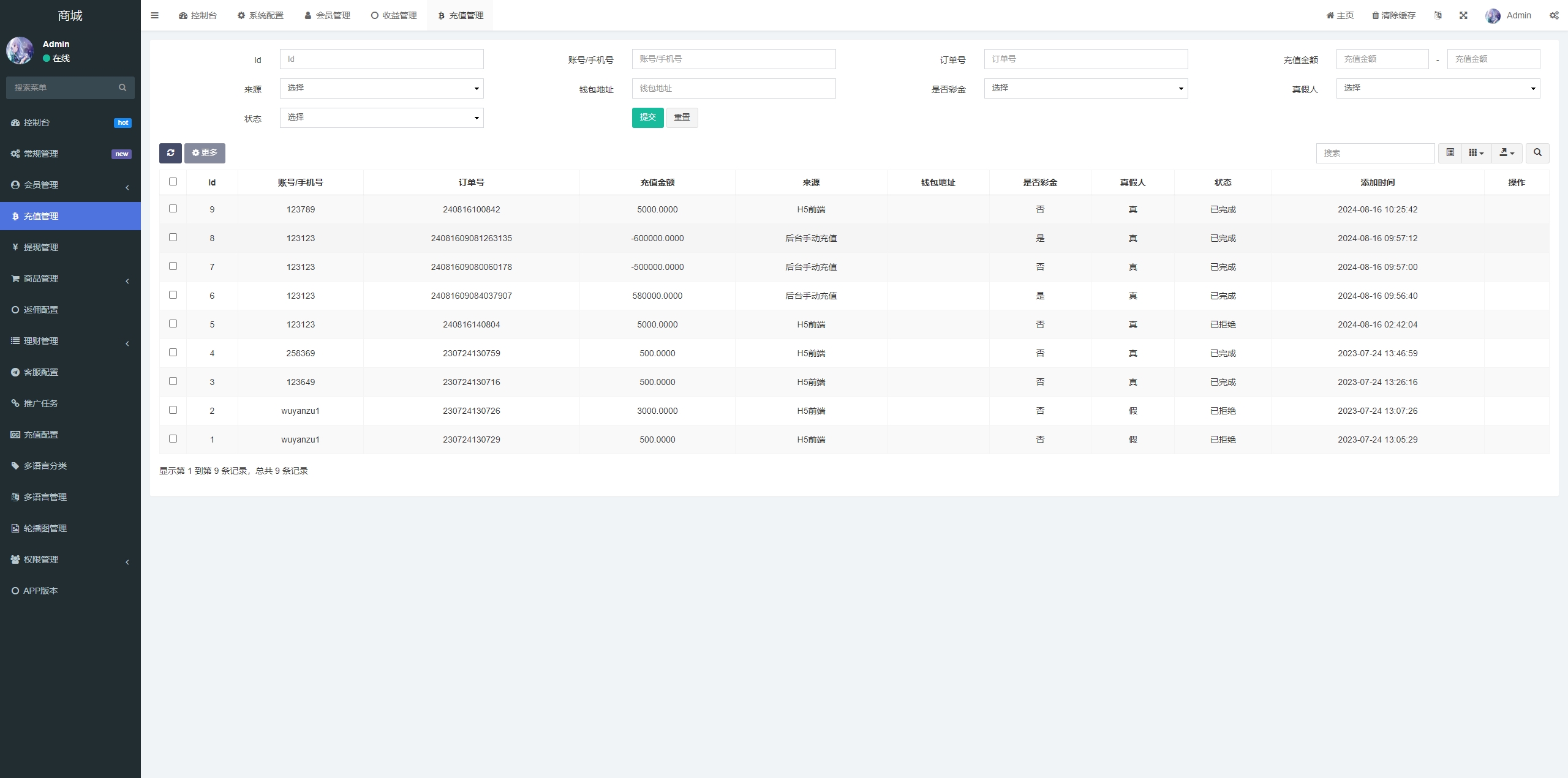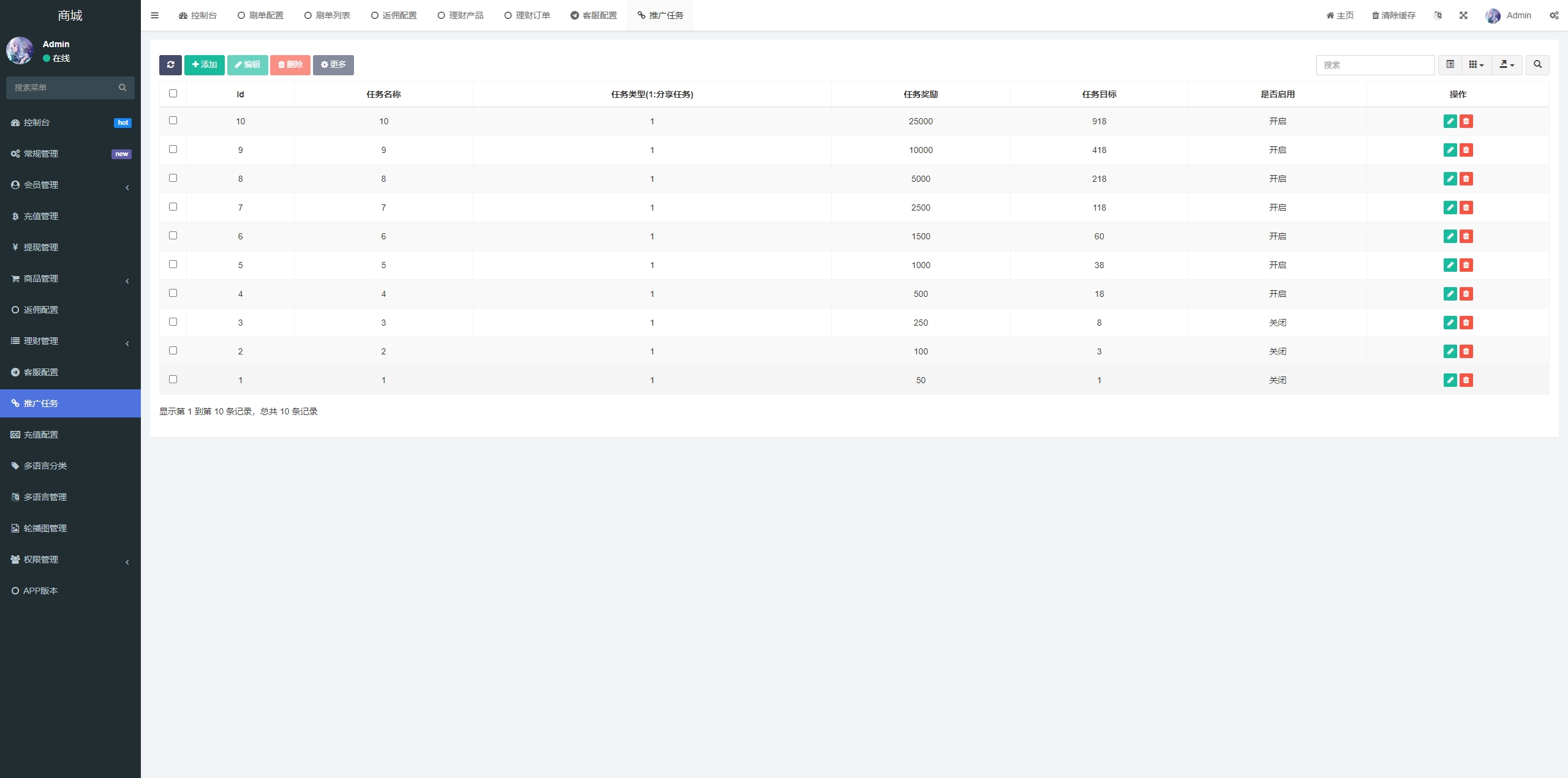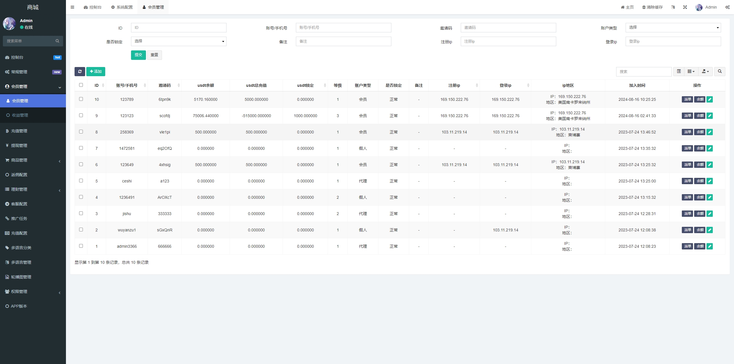 前端带多语言,余额宝,推广任务,派单卡单等功能