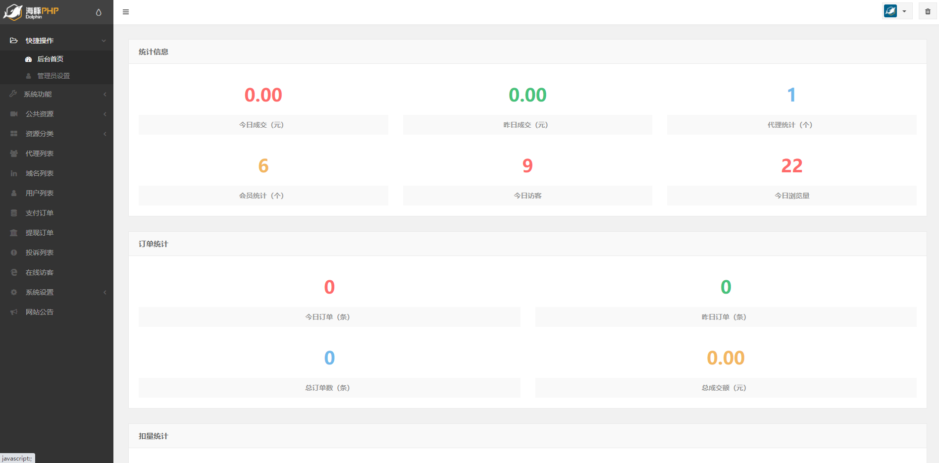 可以注册登录 在线访客功能 扣量系统
