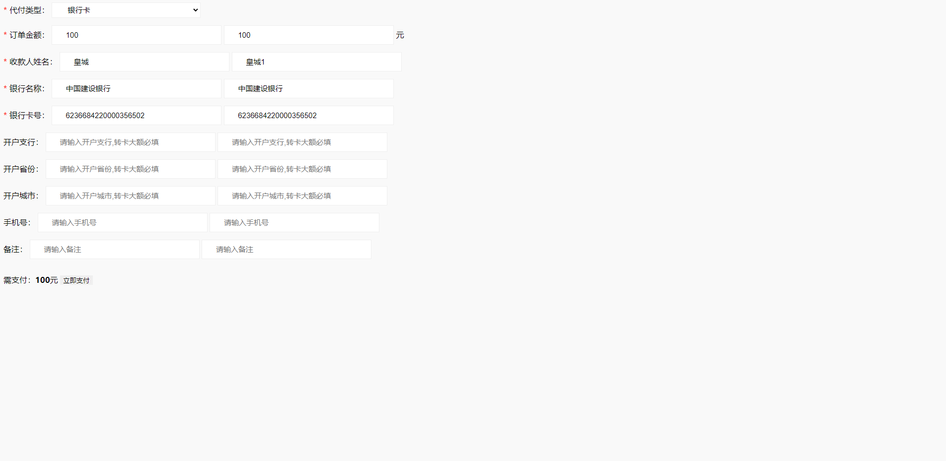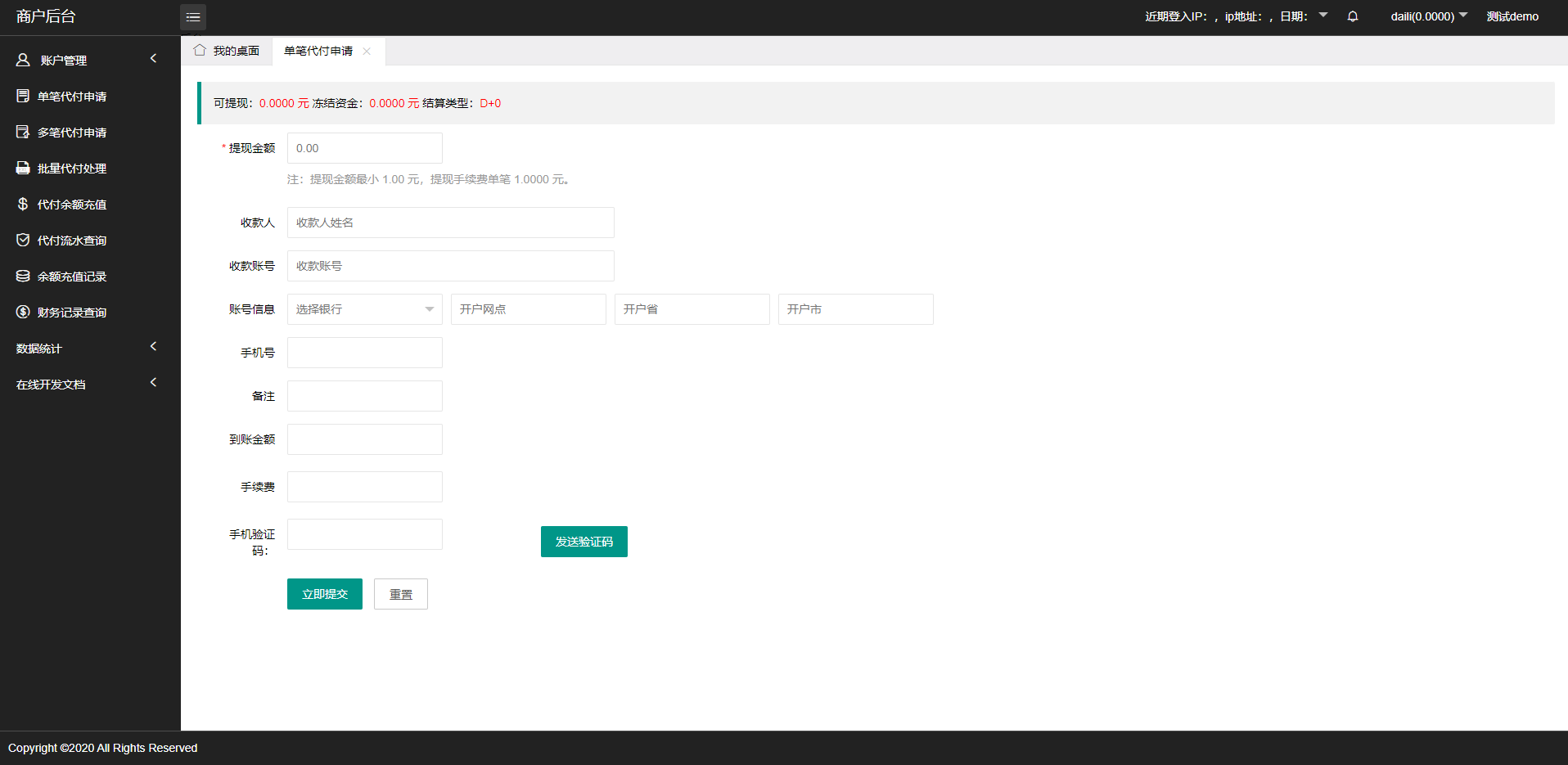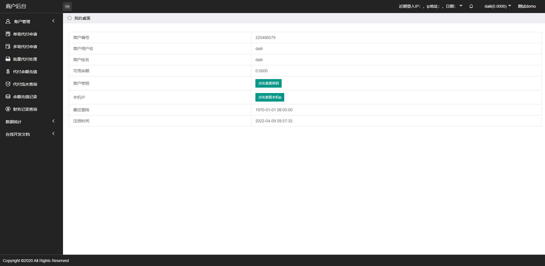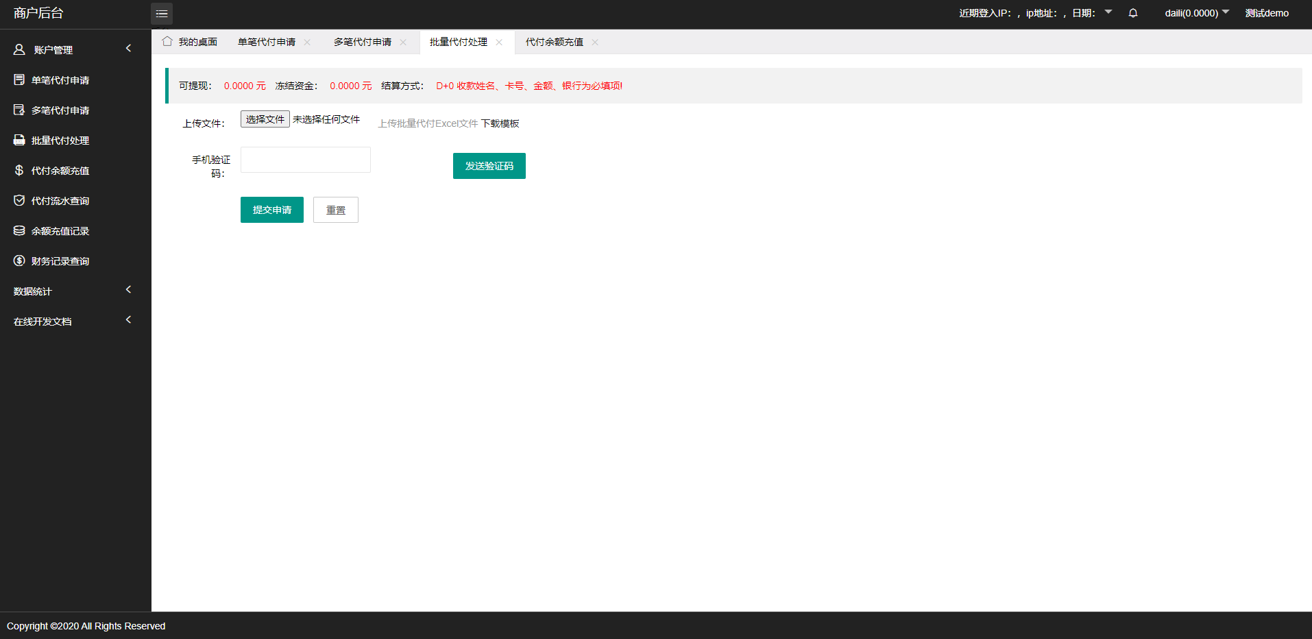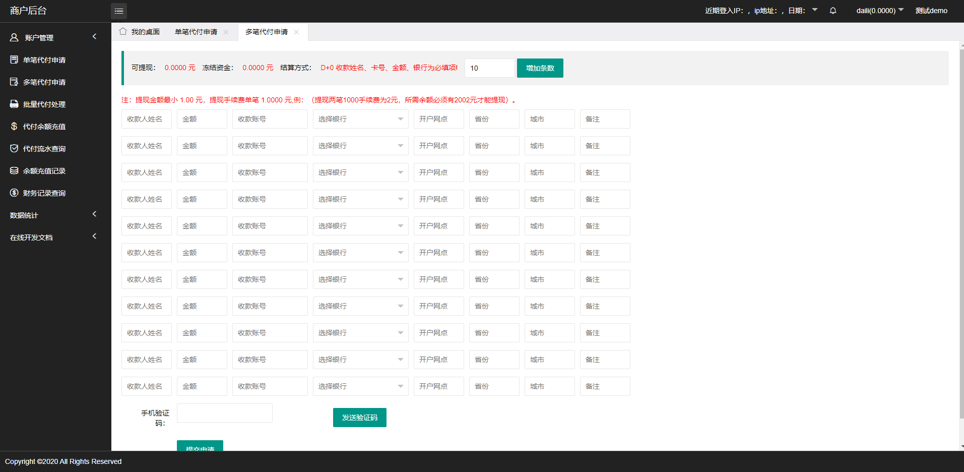admin 综合系统 人工代付/代付支付系统/代付源码/支付系统/手工代付 1:单纯的代付系统简洁明了 2:系统支持单笔代付以及批量代付 3:系统支持api代付对接/手动代付 4:支持白名单登录 5:支持谷歌验证登录 6:支持代付出款语音播报 7:系统分为:后台-代理-代付员工-商户