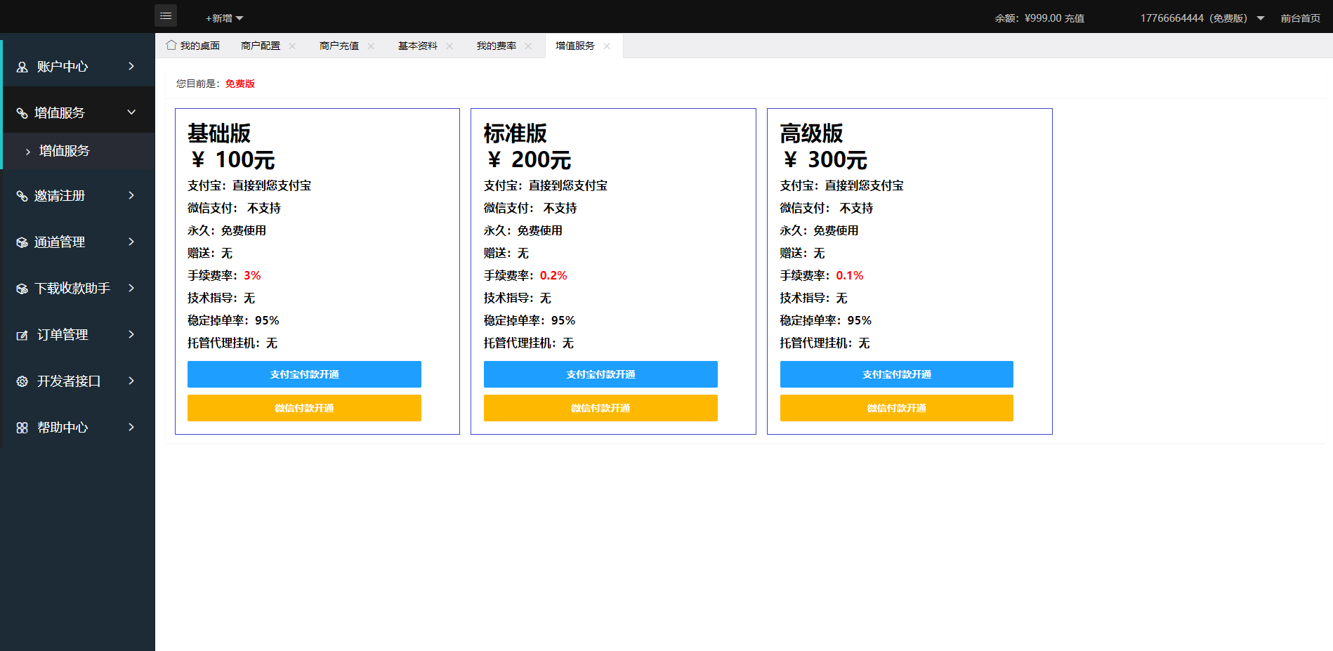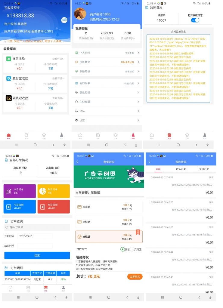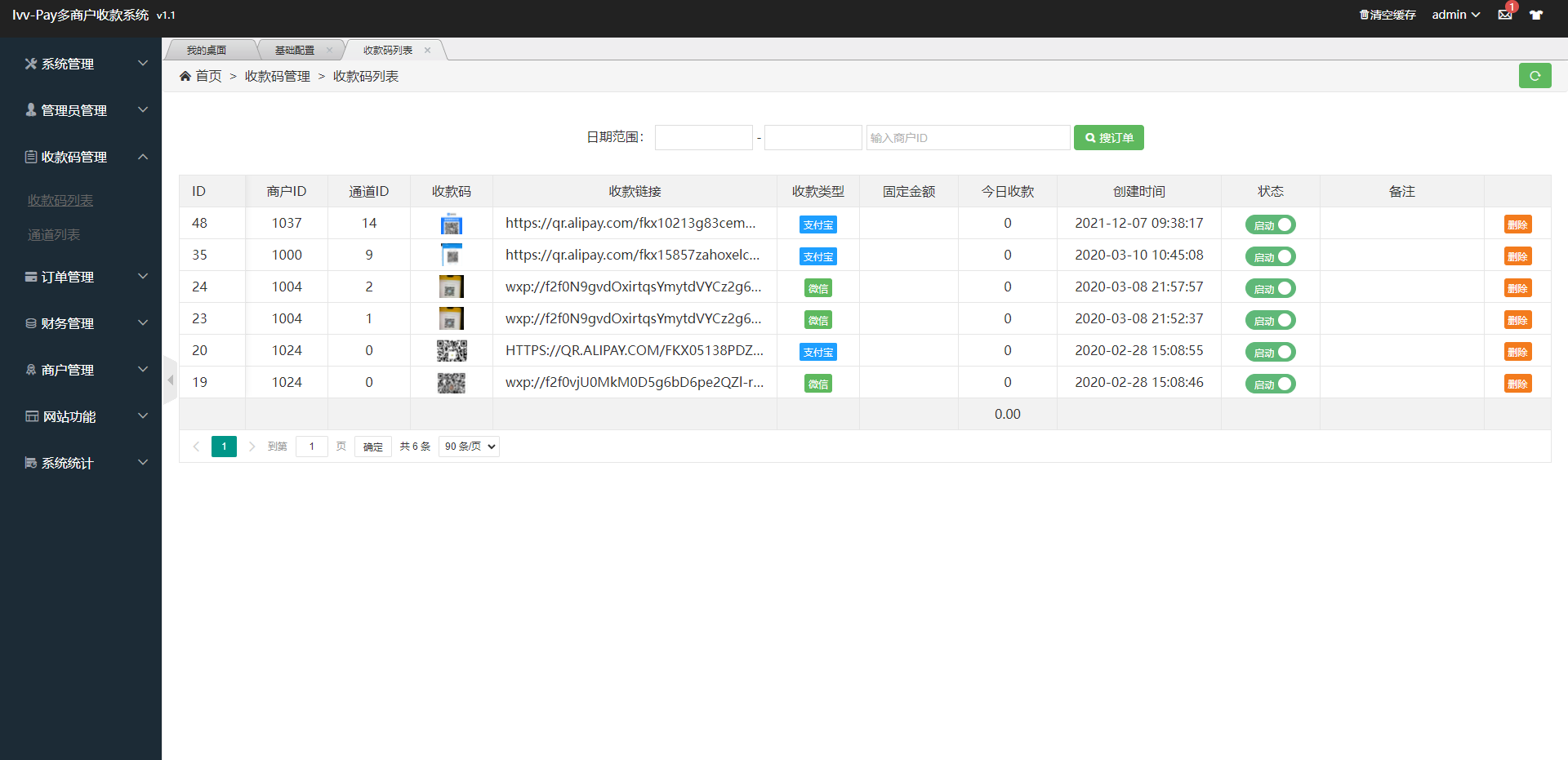 通道支持微信、支付宝、收钱吧通道,支持个码固码轮询支付
