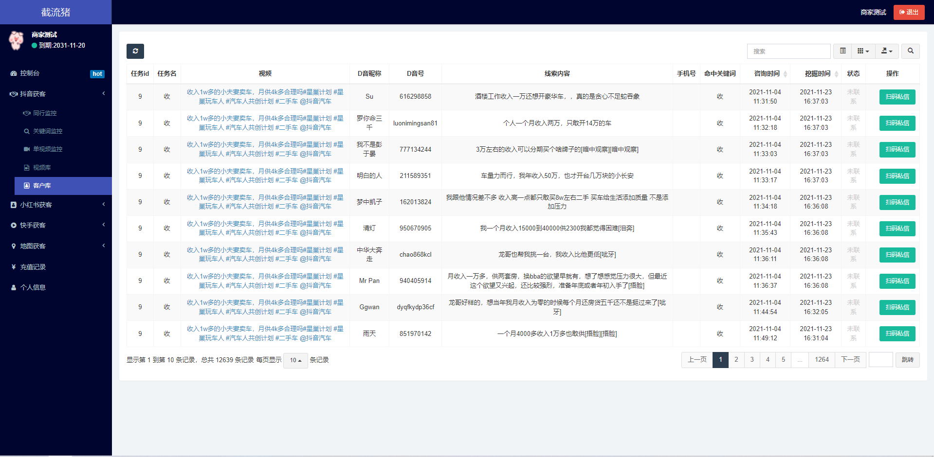 admin 综合系统 抖音快手小红书询盘 短视频询盘获客 抖音监控同行 抖音采集客户 主要功能包含: 1、D音智能分析获客 2、K手智能分析获客 3、小红薯智能分析获客 4、百度地图商家获客 5、上下级代理模式 6、多样化招商模式