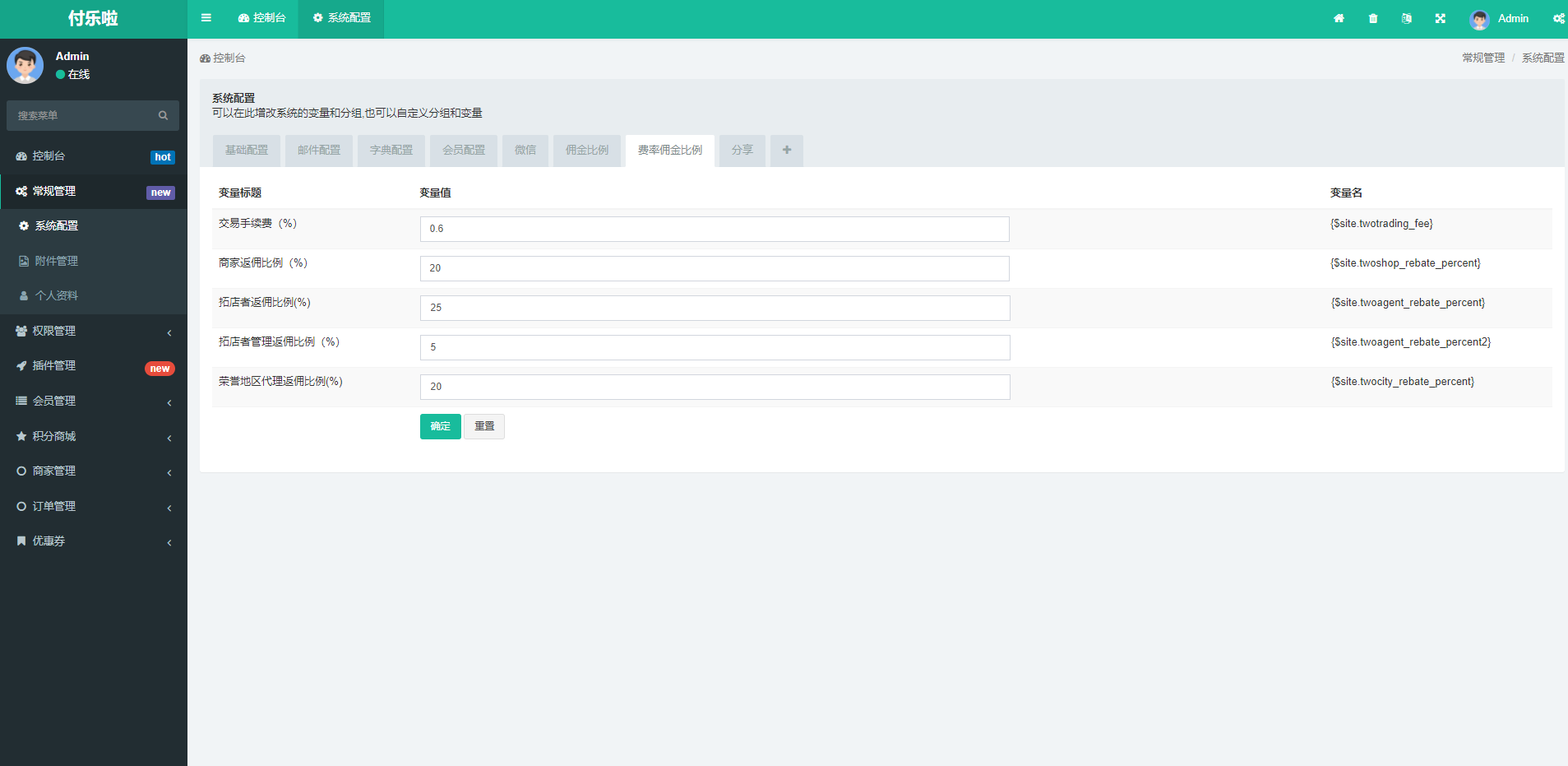 admin 综合系统 微信分账系统/供应链分润/微信支付 系统功能: 微信服务商分账功能、支持子商户设定销售分佣、平台抽成 支持自主生成经销商门店收款码 平台方积分商城、收款公众号模板通知 门店收款语音播报设备支持 适用于企业打造经销商分销、供应链分润平台。或销售分佣系统。