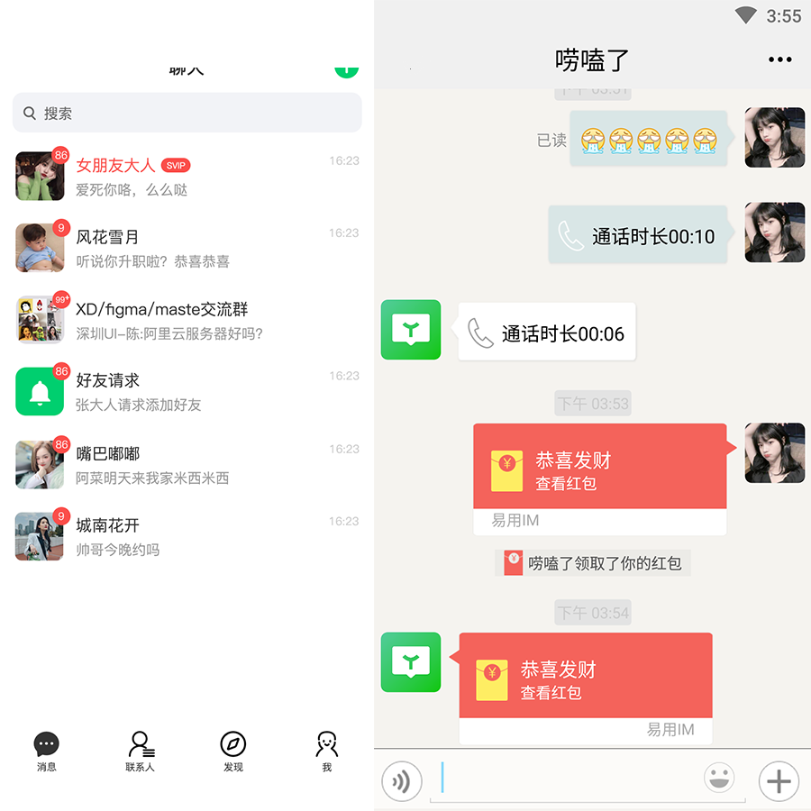 admin 社交通讯 私有化部署im即时聊天系统,聊天app,社交即时通讯,IM即时聊天语音视频通话 1,安卓端 原生开发 2,ios端 原生开发 3,后端 php, 4,自带推送功能, 5,可以对接微信支付 6,语音通话 7,视频通话等 8,单聊 9,群聊 10添加好友等功能