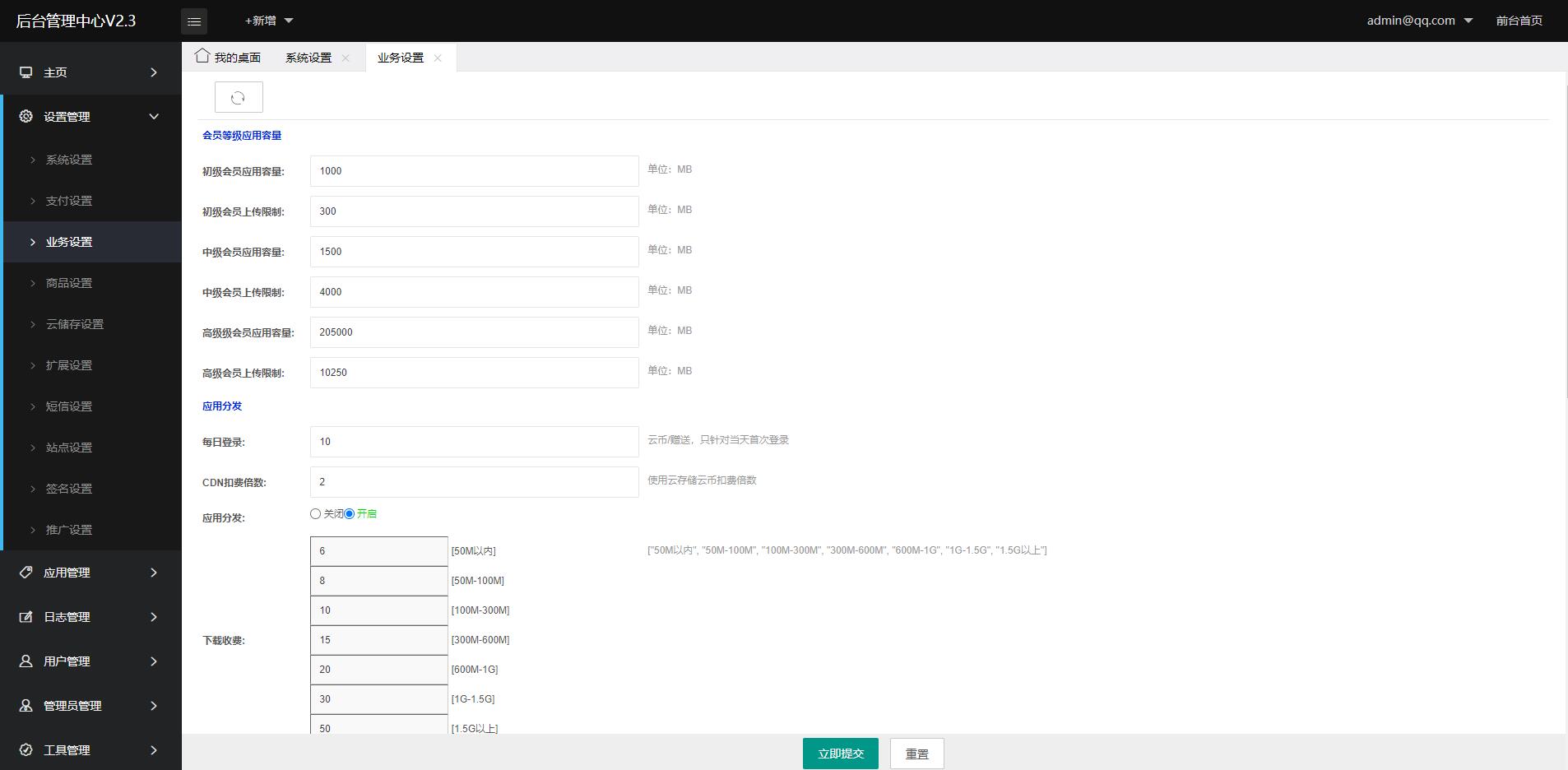 8、支持会员等级设置,来控制空间容量、是否显示广告和上传文件包限制