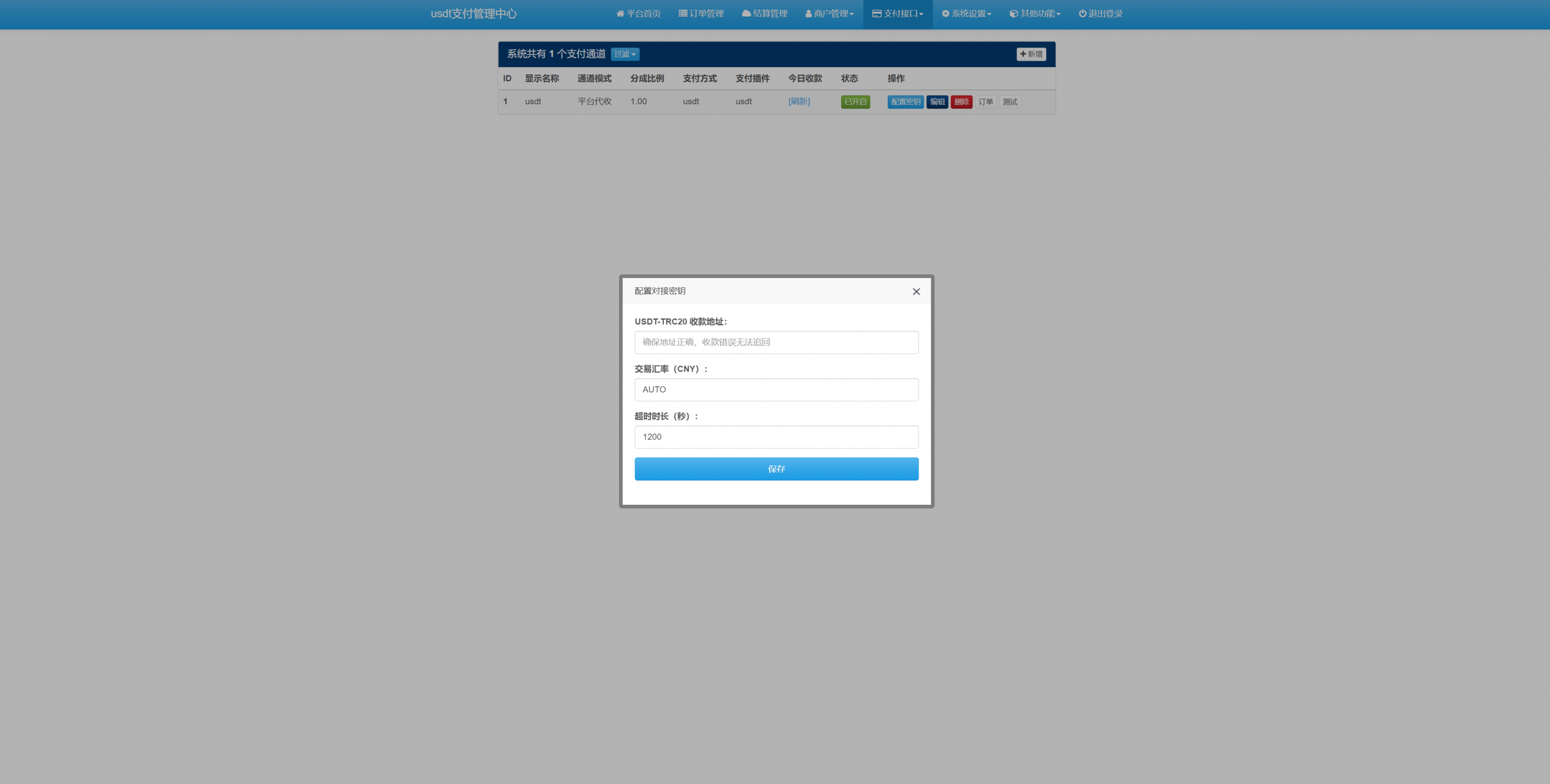 admin 综合系统 USDT支付系统/支付自动回调/TRC20协议/无接口费 USDT支付系统/支付自动回调/TRC20协议/无接口费 全新的USDT支付系统,添加通道填写收款地址即可使用 无需二开接口费用等,回调使用脚本监控 接口是USDT-TRC20协议,支付成功后最快1分钟即可回调
