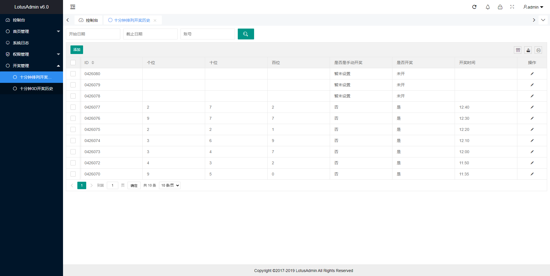开奖号码自动采集的,也可以自己后台手动设置开奖信息