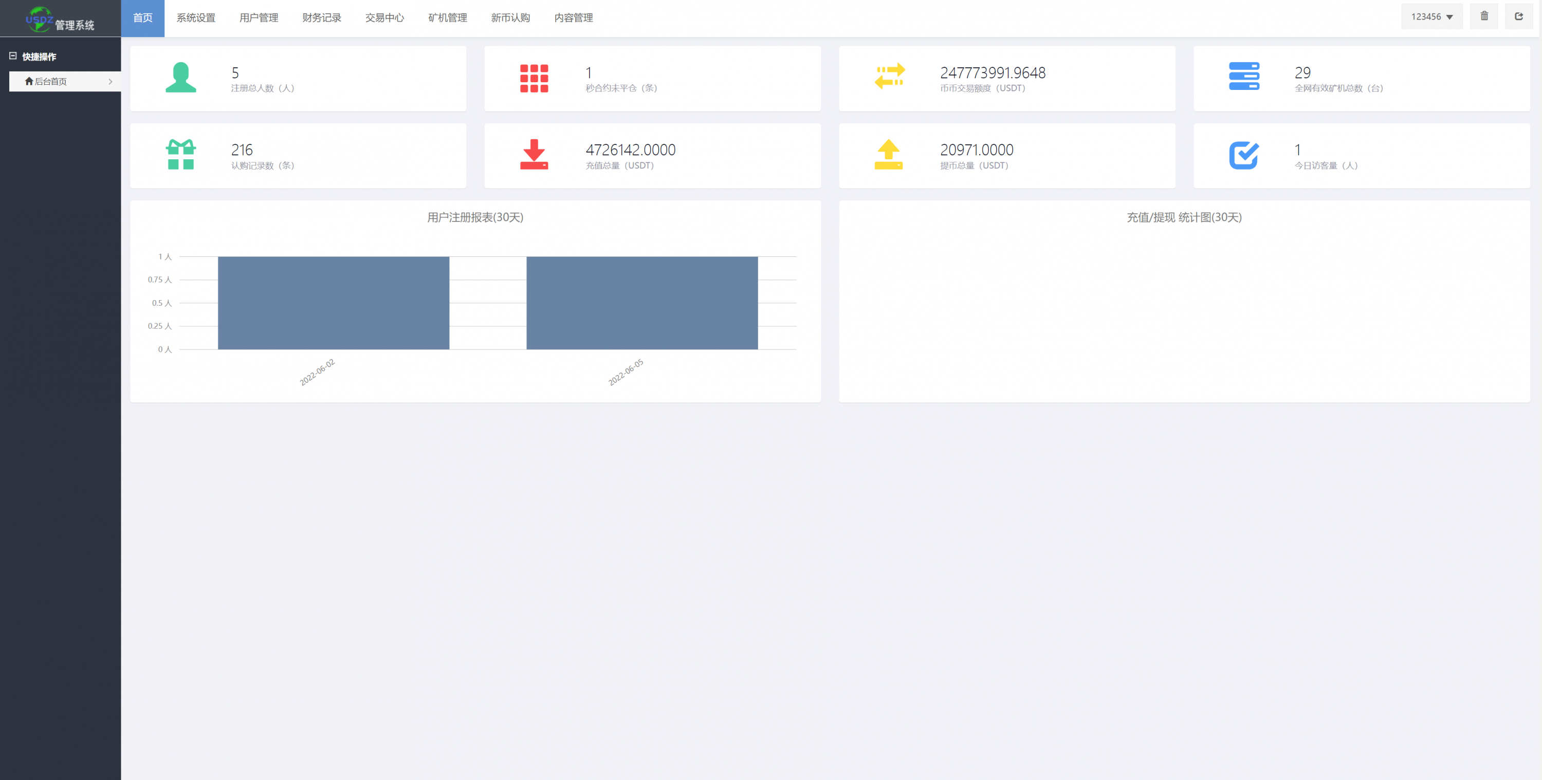 admin 交易所 微盘理财 综合系统 新UI区块链交易所/时间盘矿机系统/挖矿合约/币币合约交易/新币认购 新UI区块链交易所/时间盘矿机系统/挖矿合约/币币合约交易/新币认购 此套全新二开白色UI,优化访问速度 修复K线失效问题,系统8种语言,支持币币合约交易、新币申购、智能挖矿等功能