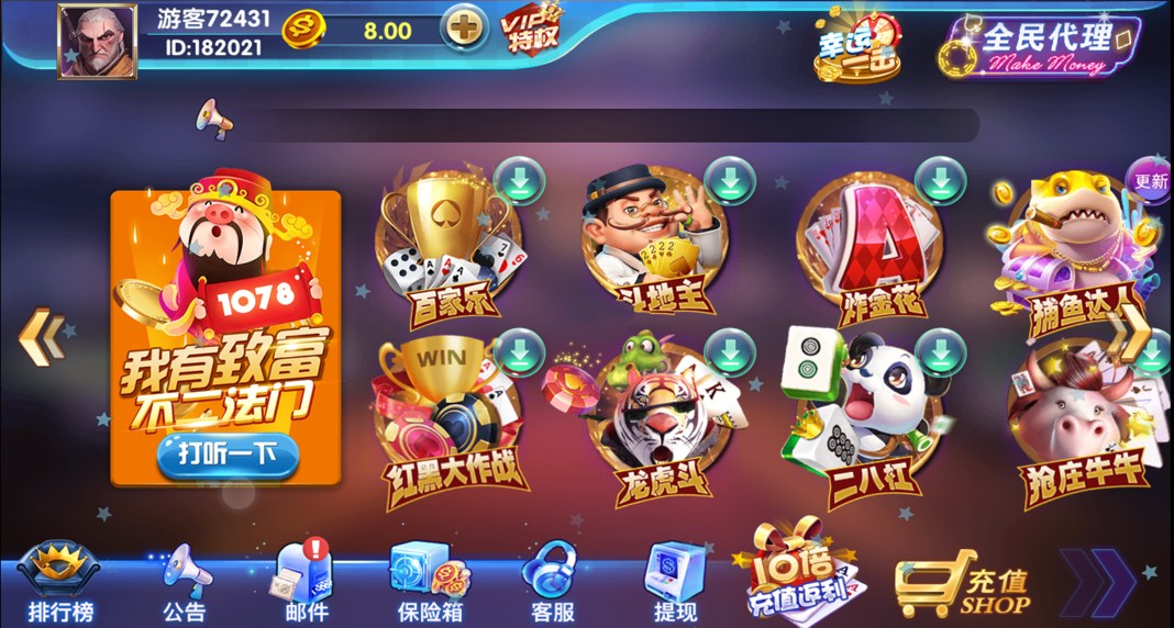 万利真金棋牌游戏平台(附带全民代理)