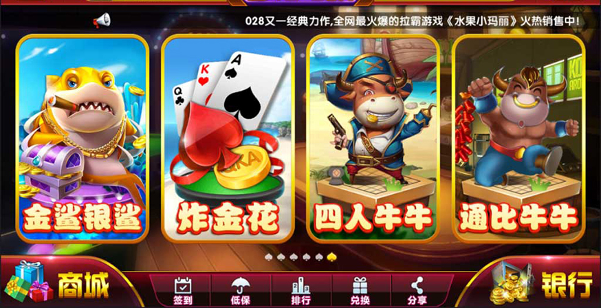 扑克游戏:通比牛牛、赢三张、二人牛牛、四人牛牛