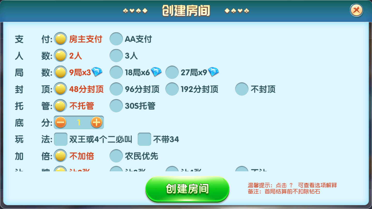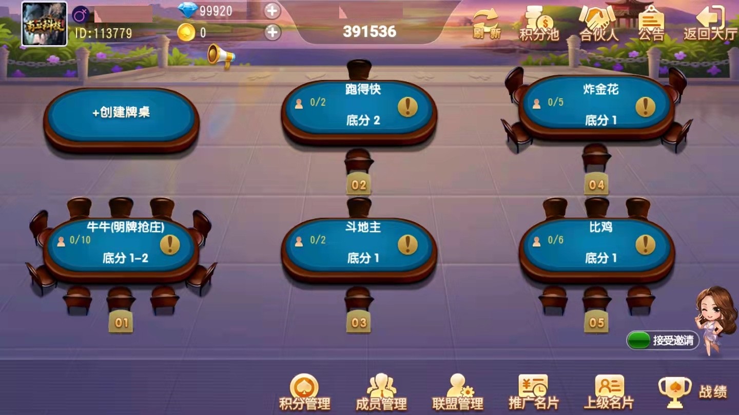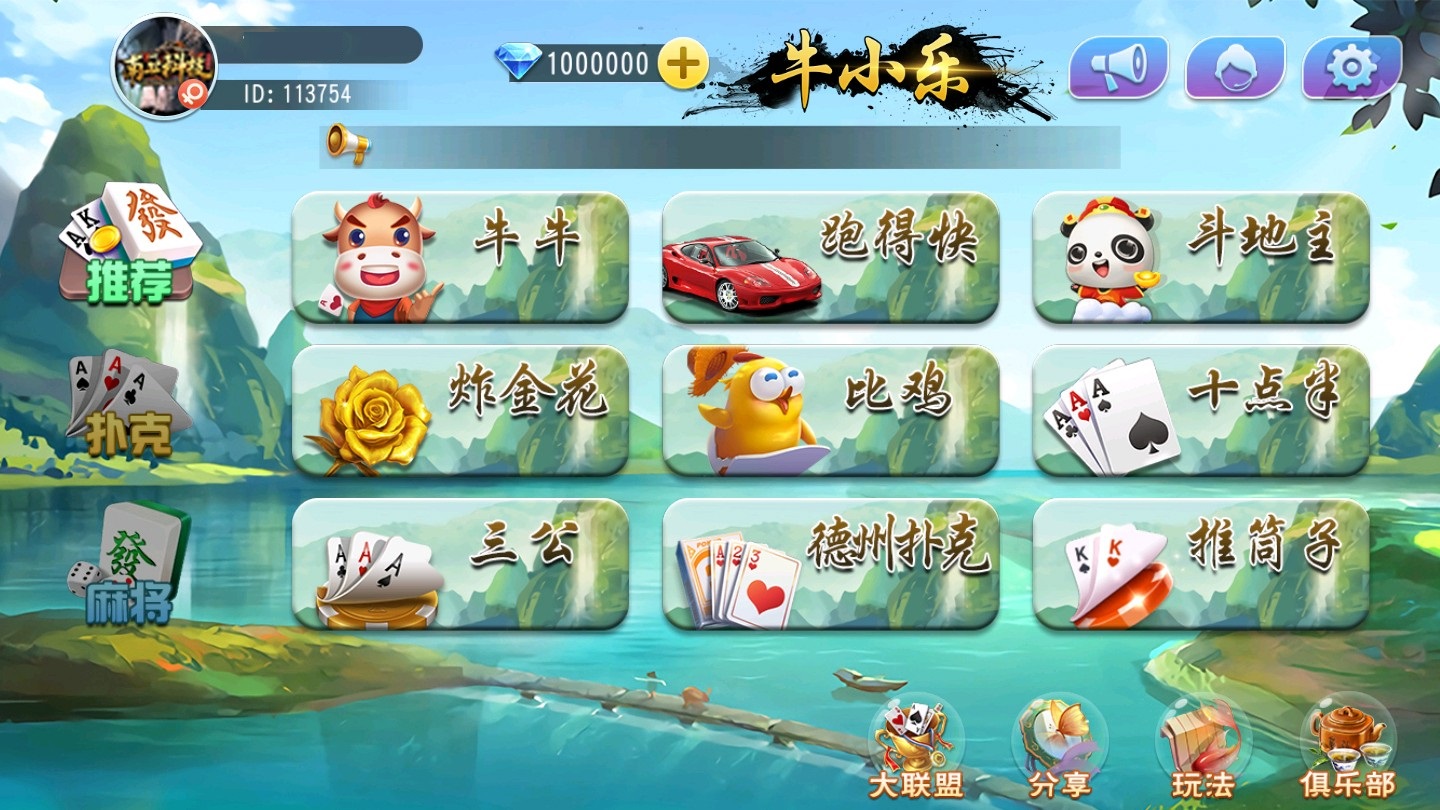 大亨十三水房卡棋牌游戏(俱乐部+积分模式)