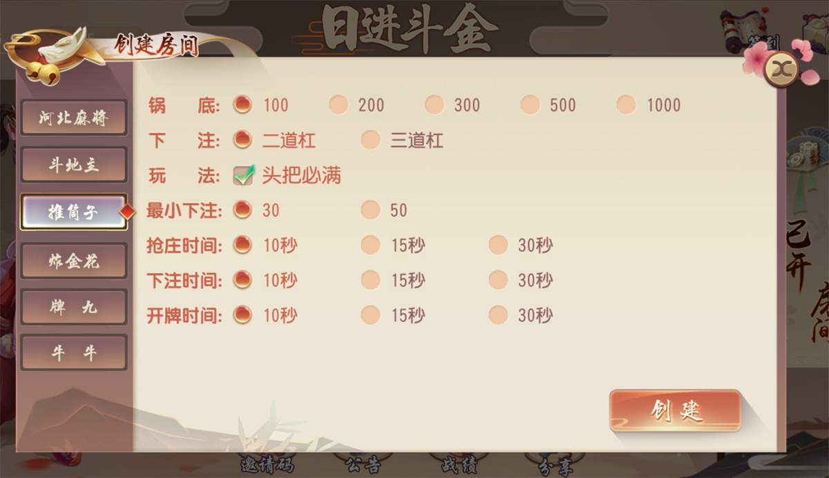 内含游戏:河北麻将、斗地主、推筒子、扎金花、牌九、牛牛。