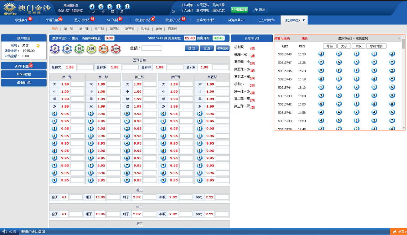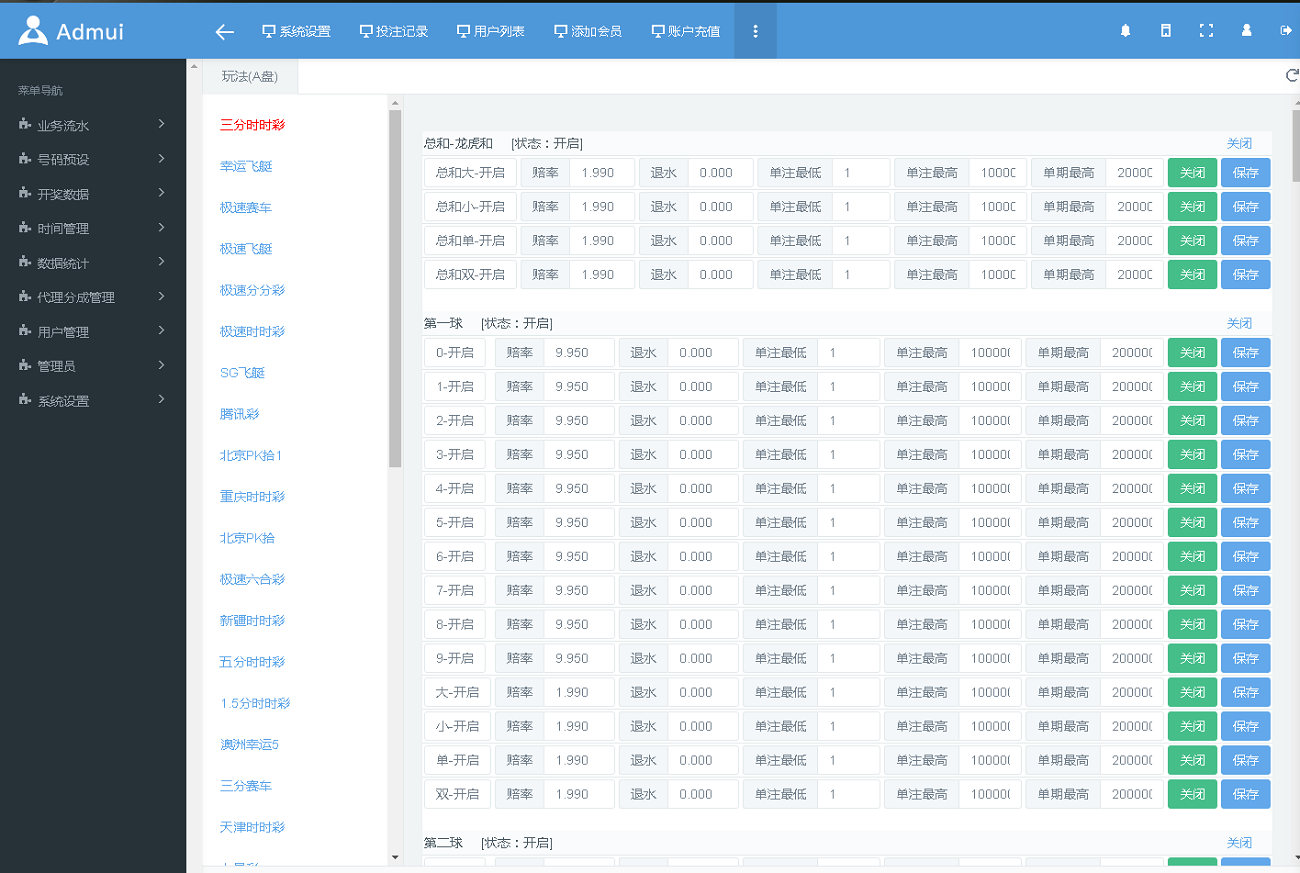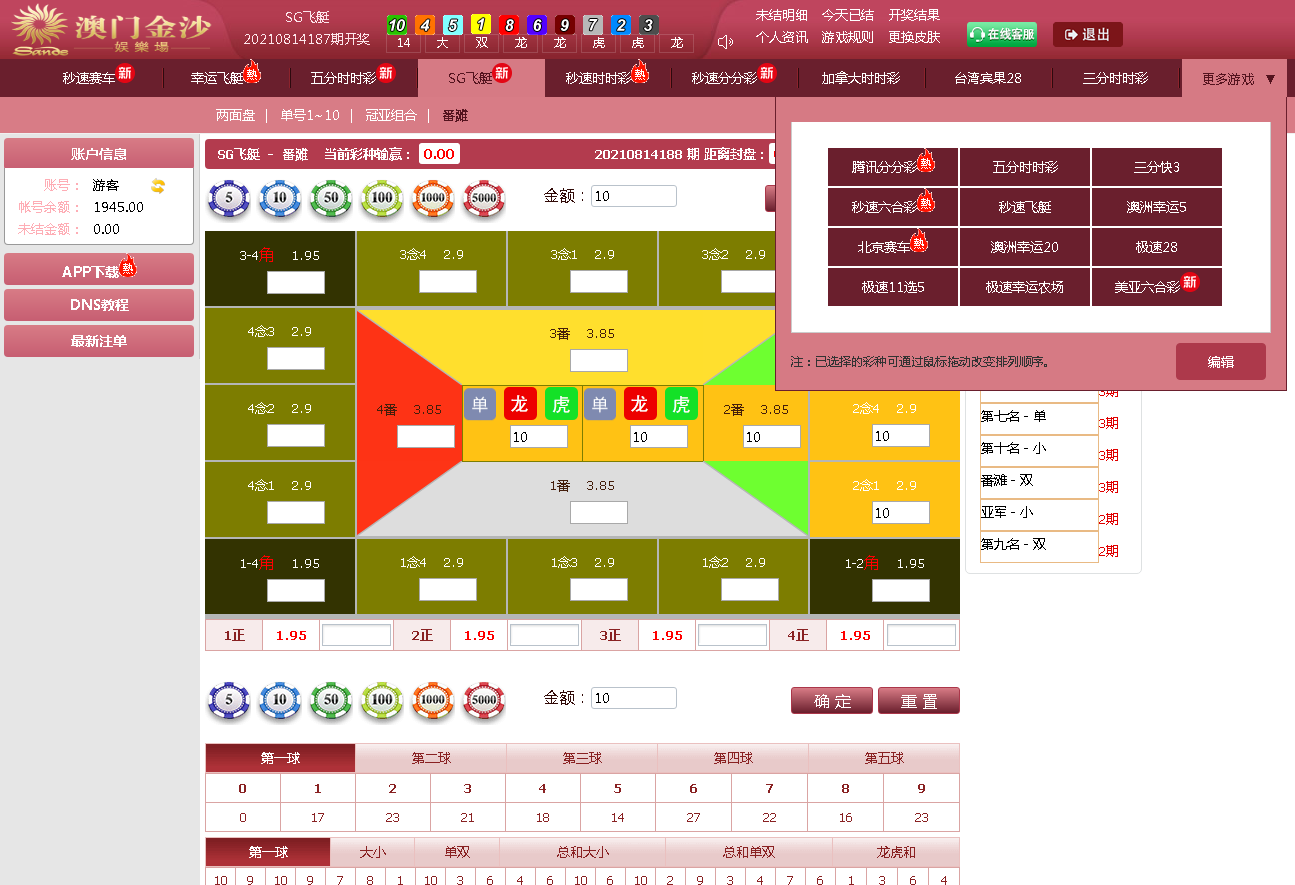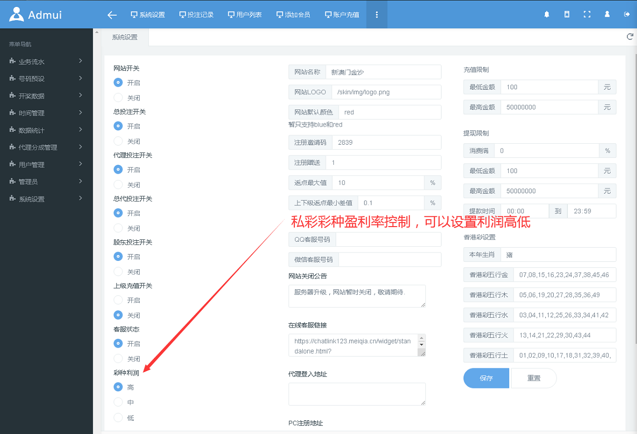 admin 菠菜彩票 【运营版】最新时时彩现金盘口网源码,带系统彩盈利控制,新增多个168彩 【运营版】最新时时彩现金盘口网源码,带系统彩盈利控制,新增多个168彩,澳洲幸运5,澳洲幸运10,SG飞艇,台湾宾果等等 新增两种玩法:番摊玩法和佰家乐玩法 主要亮点是可以控制彩种盈利率