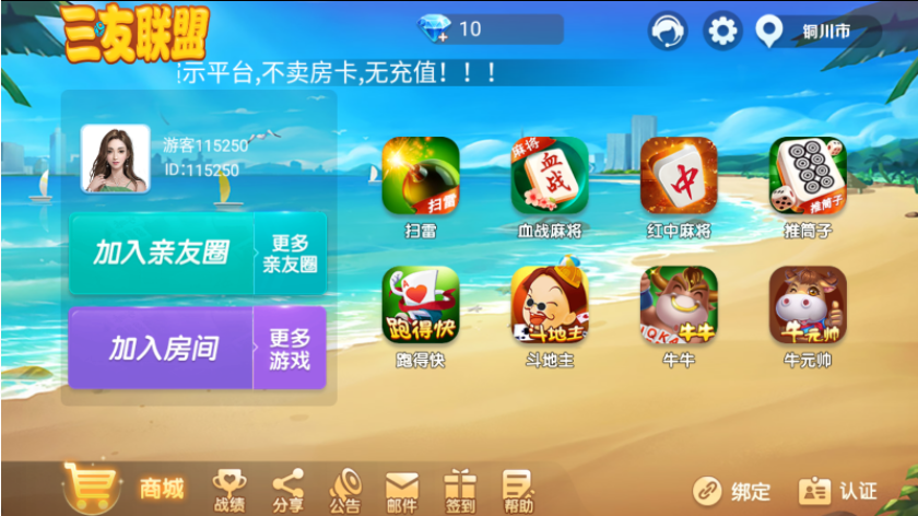 内含游戏:扫雷、卡五星、血战麻将、红中麻将、仙桃晃晃、兴化麻将、推筒子、南京麻将、河南杠次、宿州麻将、安庆麻将、潮汕麻将、安图麻将、资溪麻将、焦作麻将、鹤峰闷癞子、上虞花麻将、贵溪东带庄、十三水、一痞二癞、奇迹跑得快、斗地主、癞子牛牛、明牌牛牛、斗公牛、新炸金花、三公演义、十点半、通山打供、泰和过炸、资溪打盾、八张清、关门、窝龙、新余510K、拼天九、跑胡子、天天百福、莆田吹牛、飞小鸡麻将、漳浦麻将、易县麻将、荔浦麻将、临泉麻将、万年麻将、钓红点、德州扑克、鱼虾蟹、打头子、捞腌菜、血战麻将3D