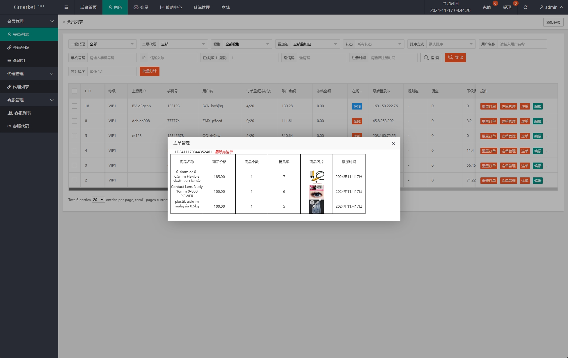 系统支持:签到、余额宝、连单卡单功能