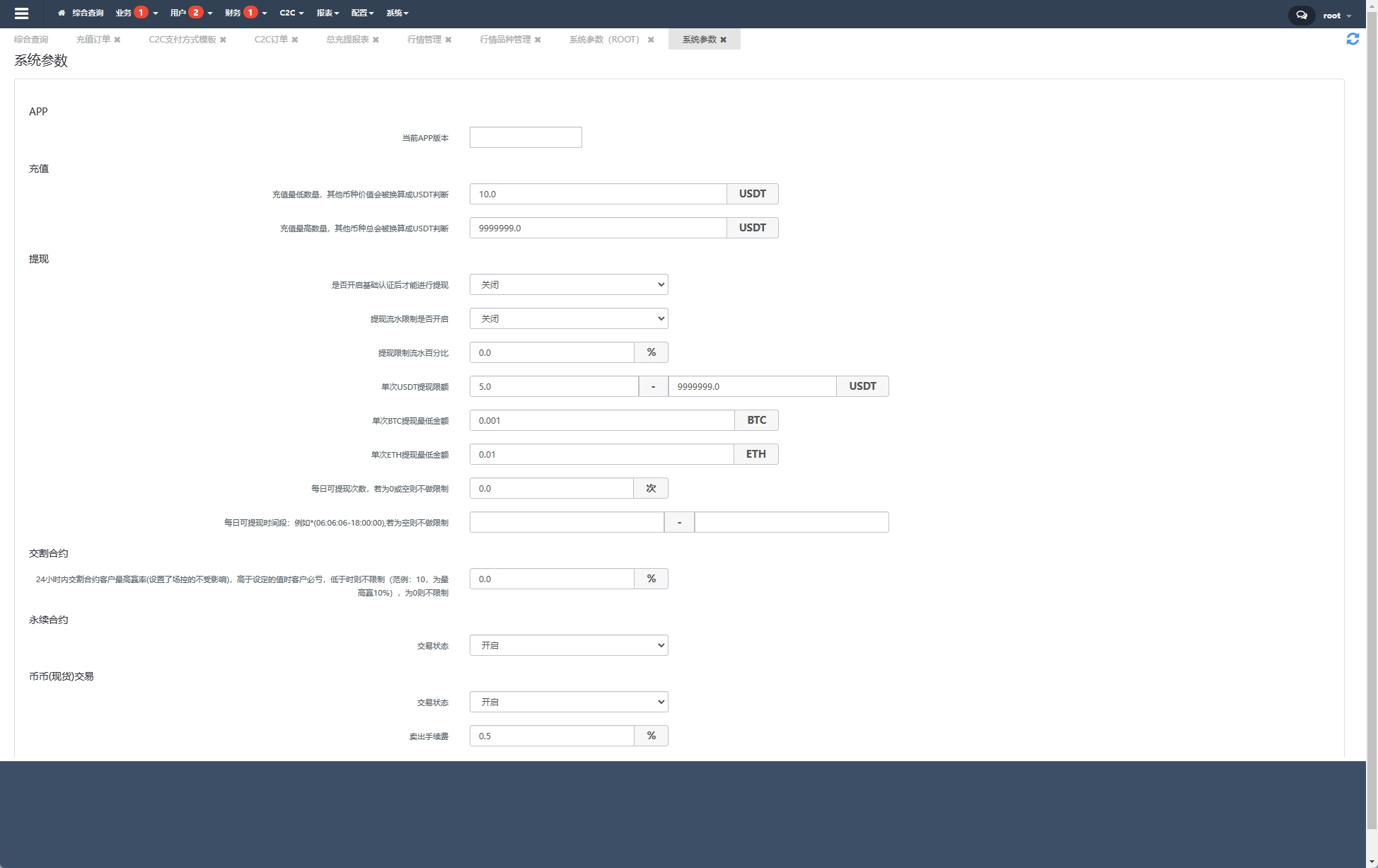 admin 交易所 海外JAVA交易所/多语言交易所/币币/永续合约/期权交易 多语言JAVA交易所系统,手机VUE开发,服务端JAVA全开源 系统功能:币币交易、永续合约、期权交易、闪兑、理财、借币、邀请等功能