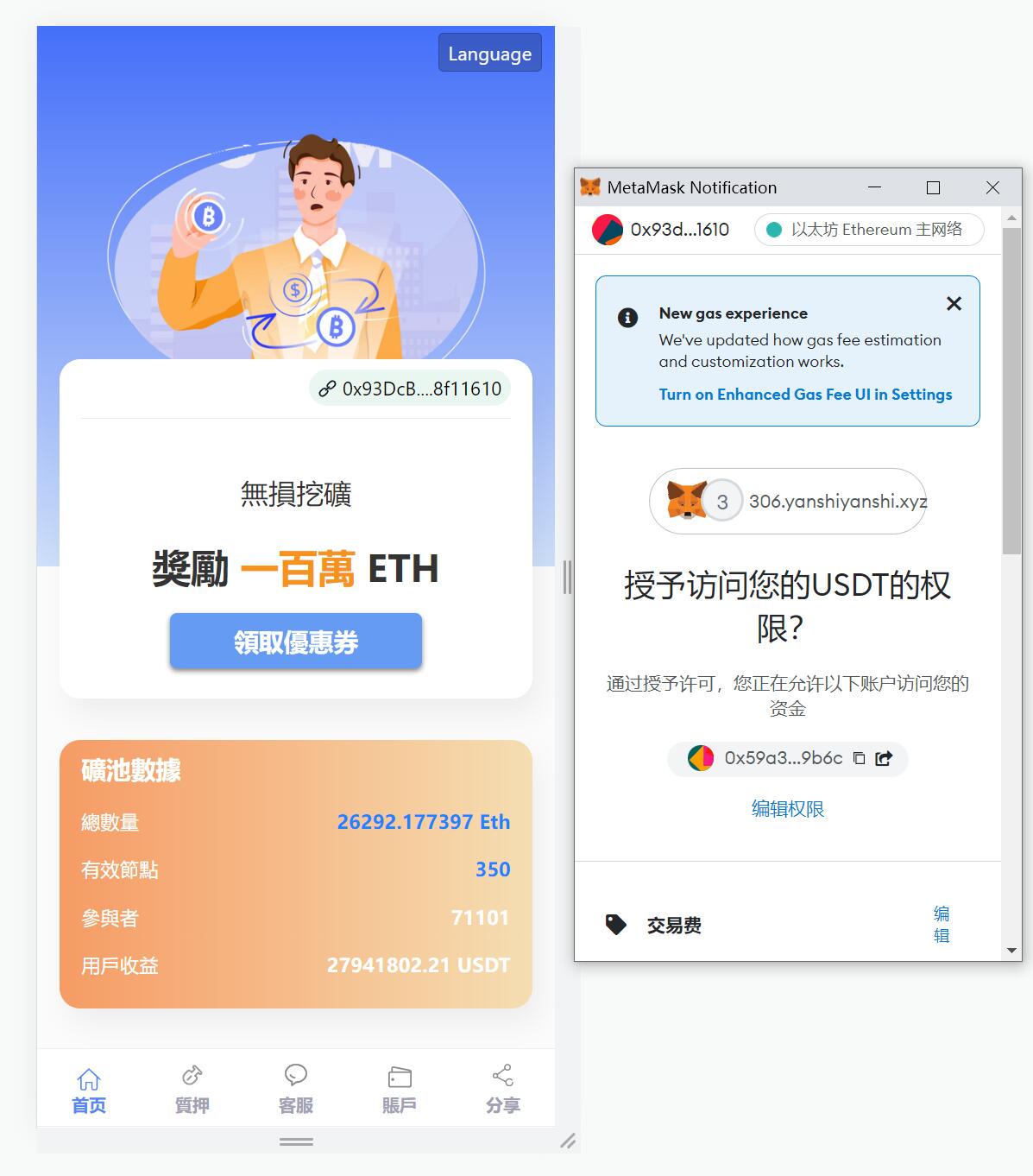 这是个钱包授权质押挖矿系统