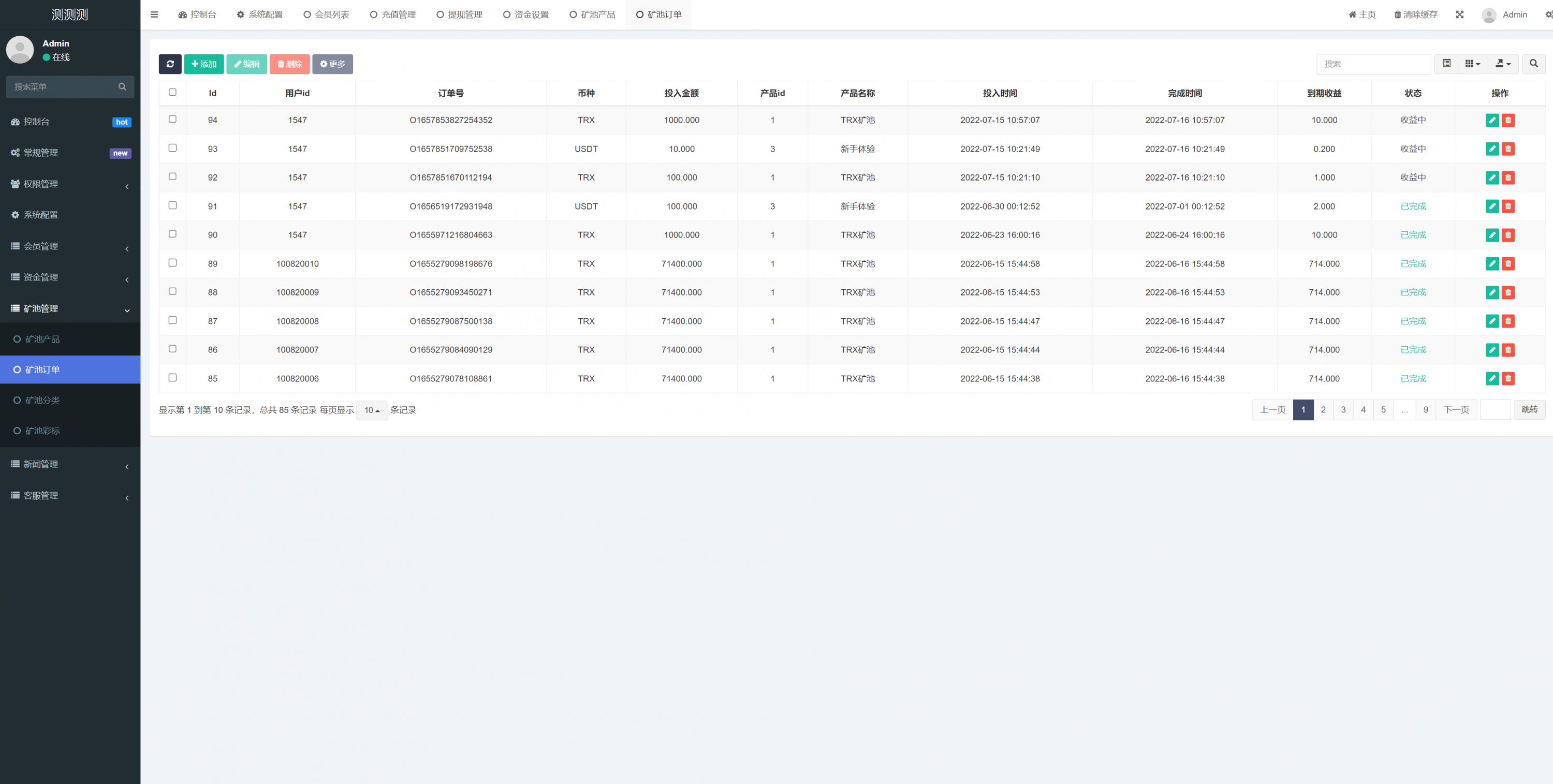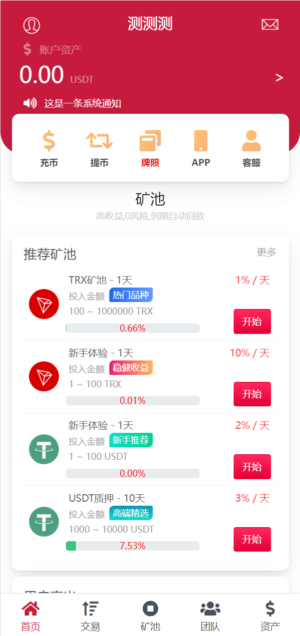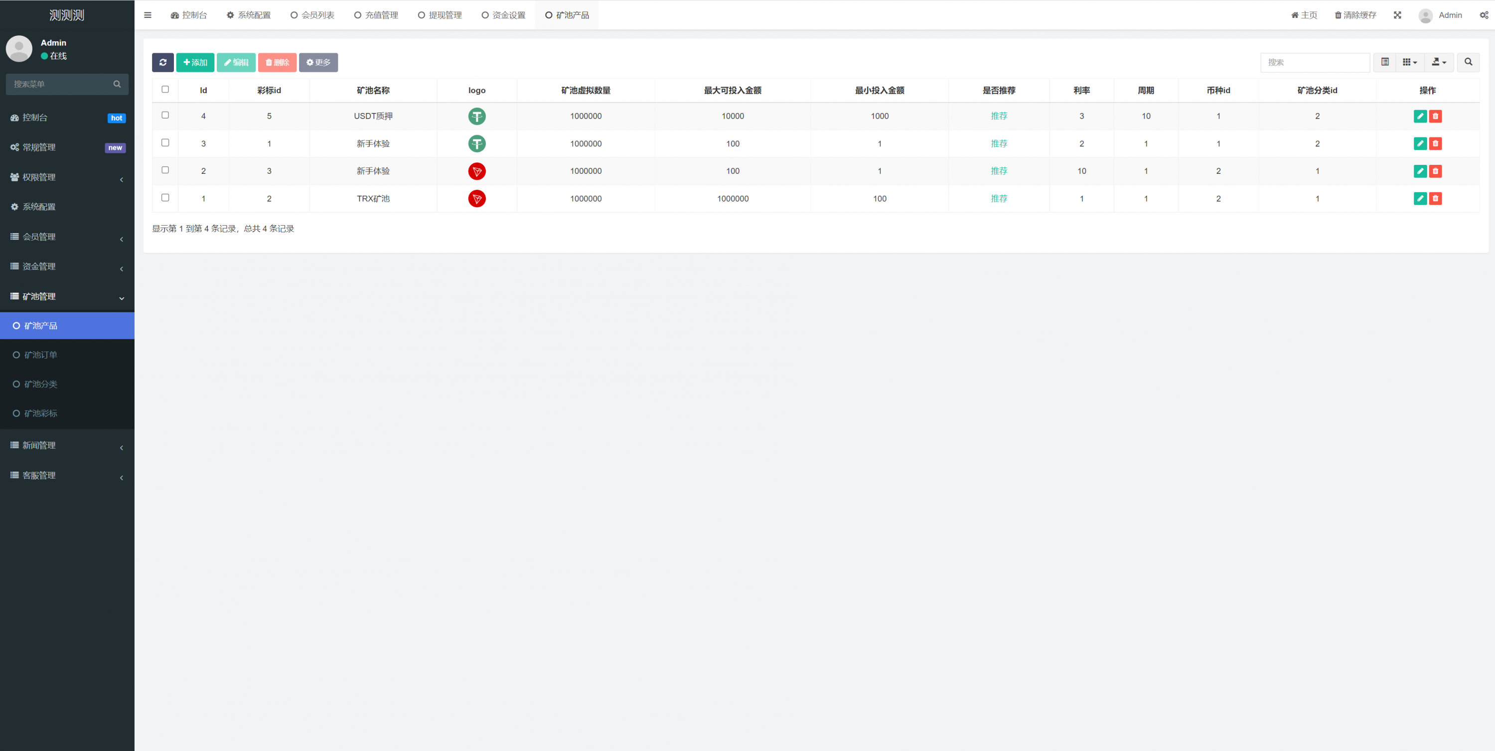 admin 微盘理财 综合系统 新版USDT/TRX区块链理财系统/质押挖矿/云算力矿机系统 新版USDT/TRX区块链理财系统/质押挖矿/云算力矿机系统 源码是全新开发的usdt/trx双币种的矿机投资系统 支持双币种充值提币方式