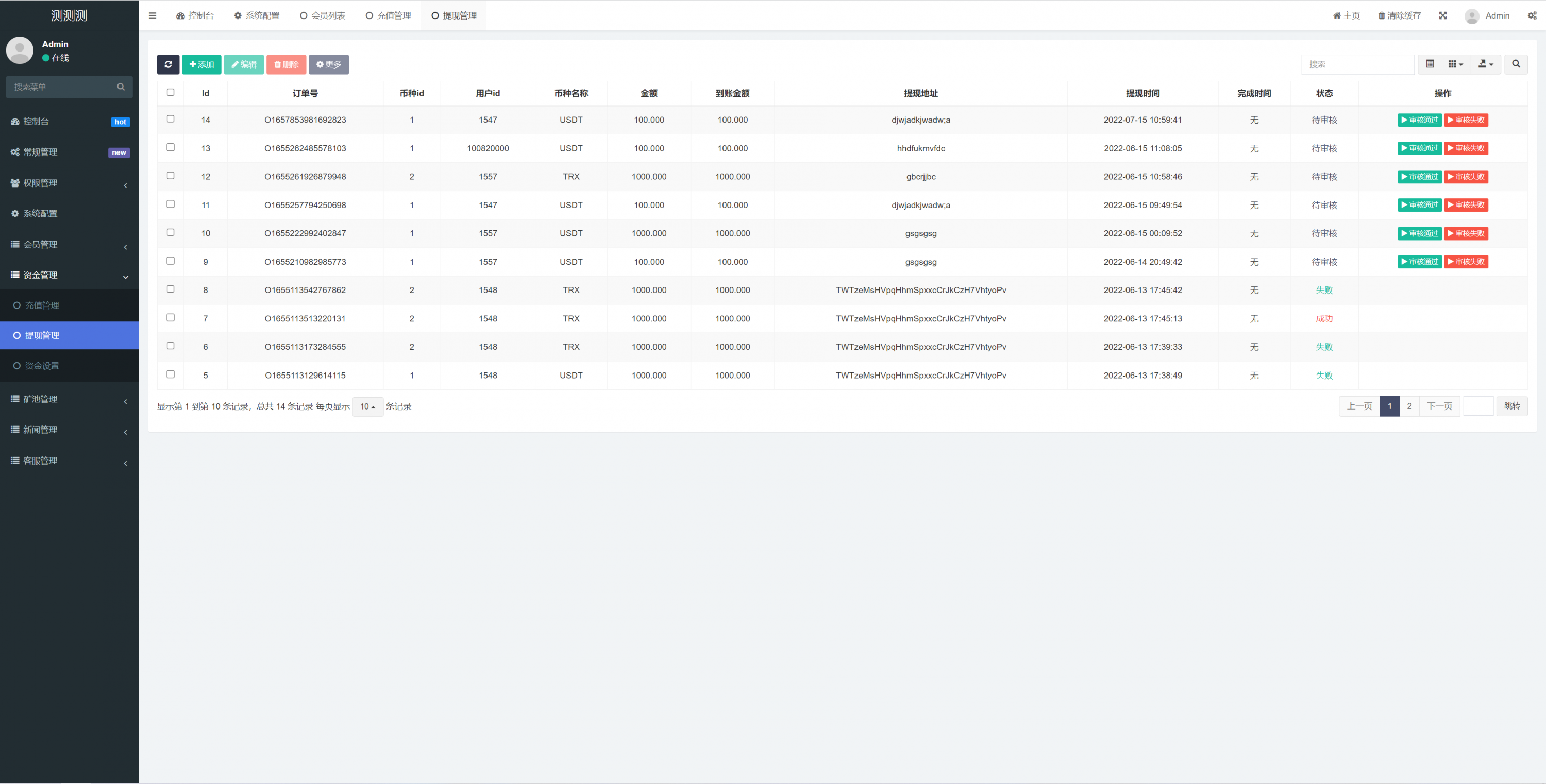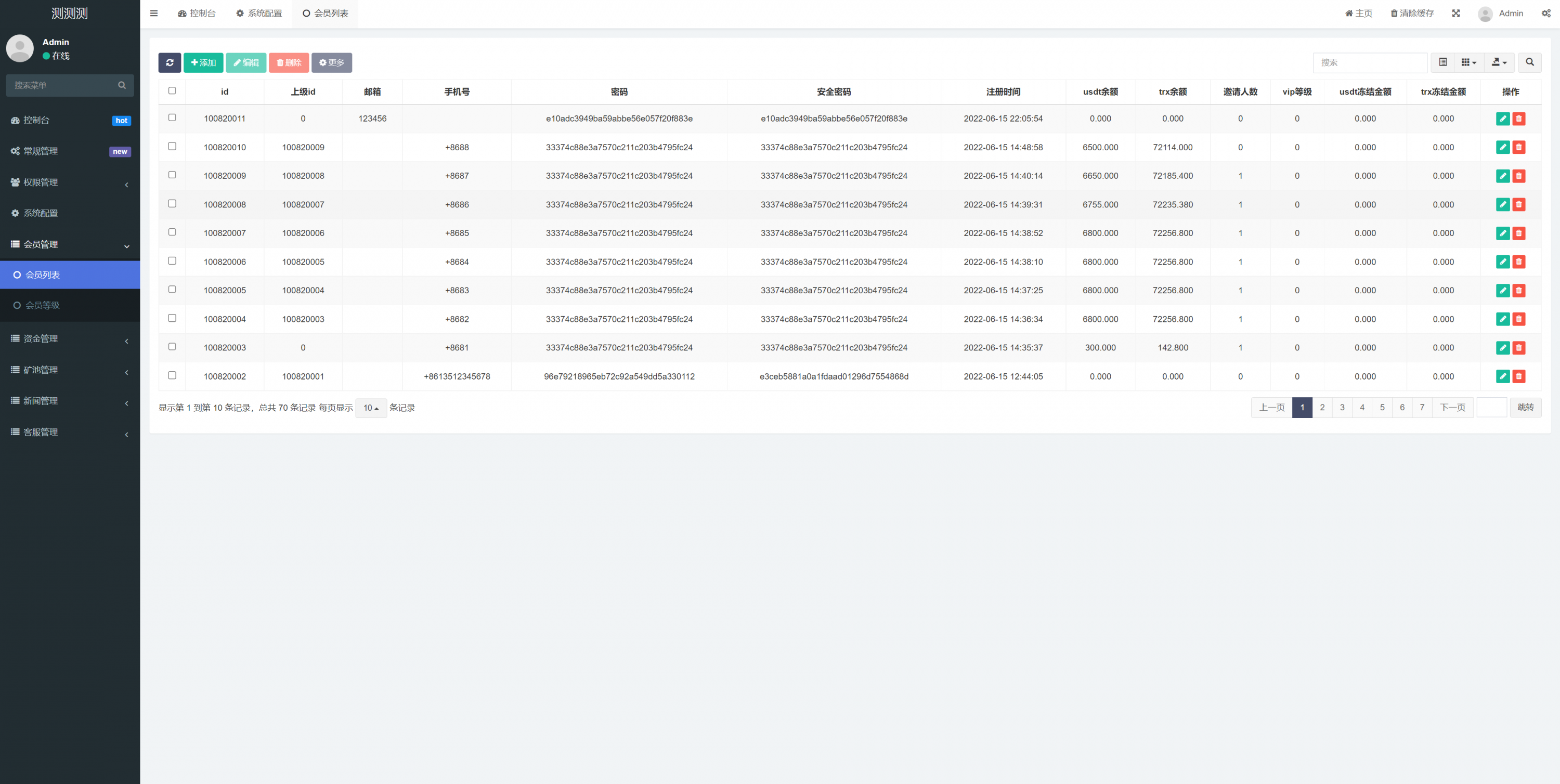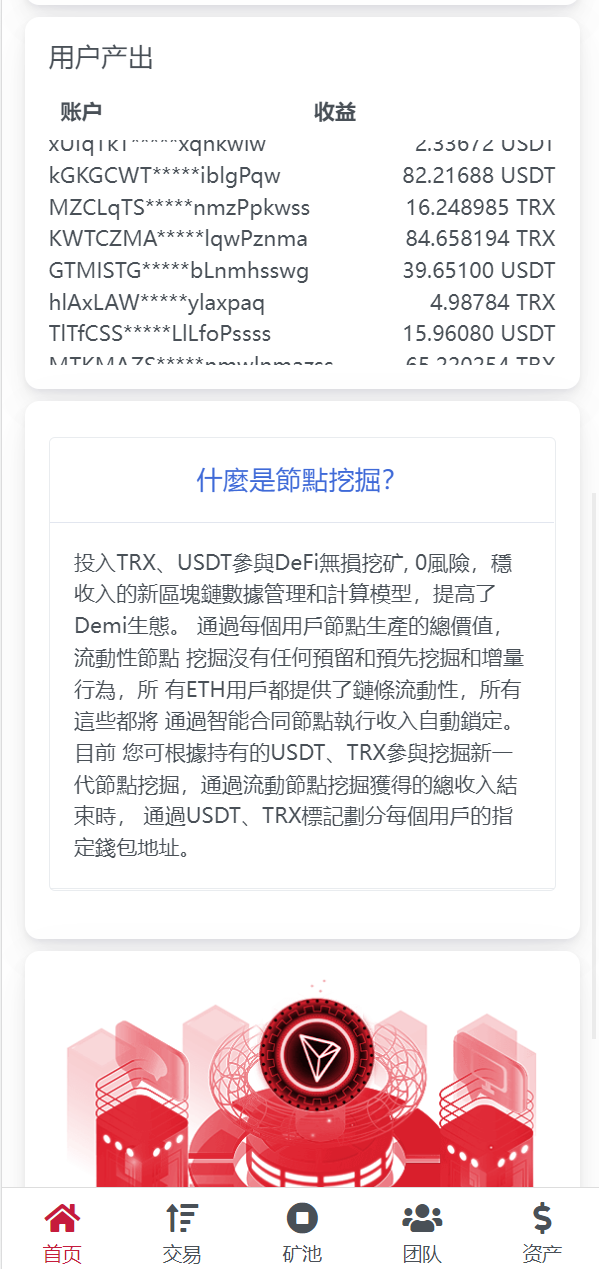 admin 微盘理财 综合系统 新版USDT/TRX区块链理财系统/质押挖矿/云算力矿机系统 新版USDT/TRX区块链理财系统/质押挖矿/云算力矿机系统 源码是全新开发的usdt/trx双币种的矿机投资系统 支持双币种充值提币方式
