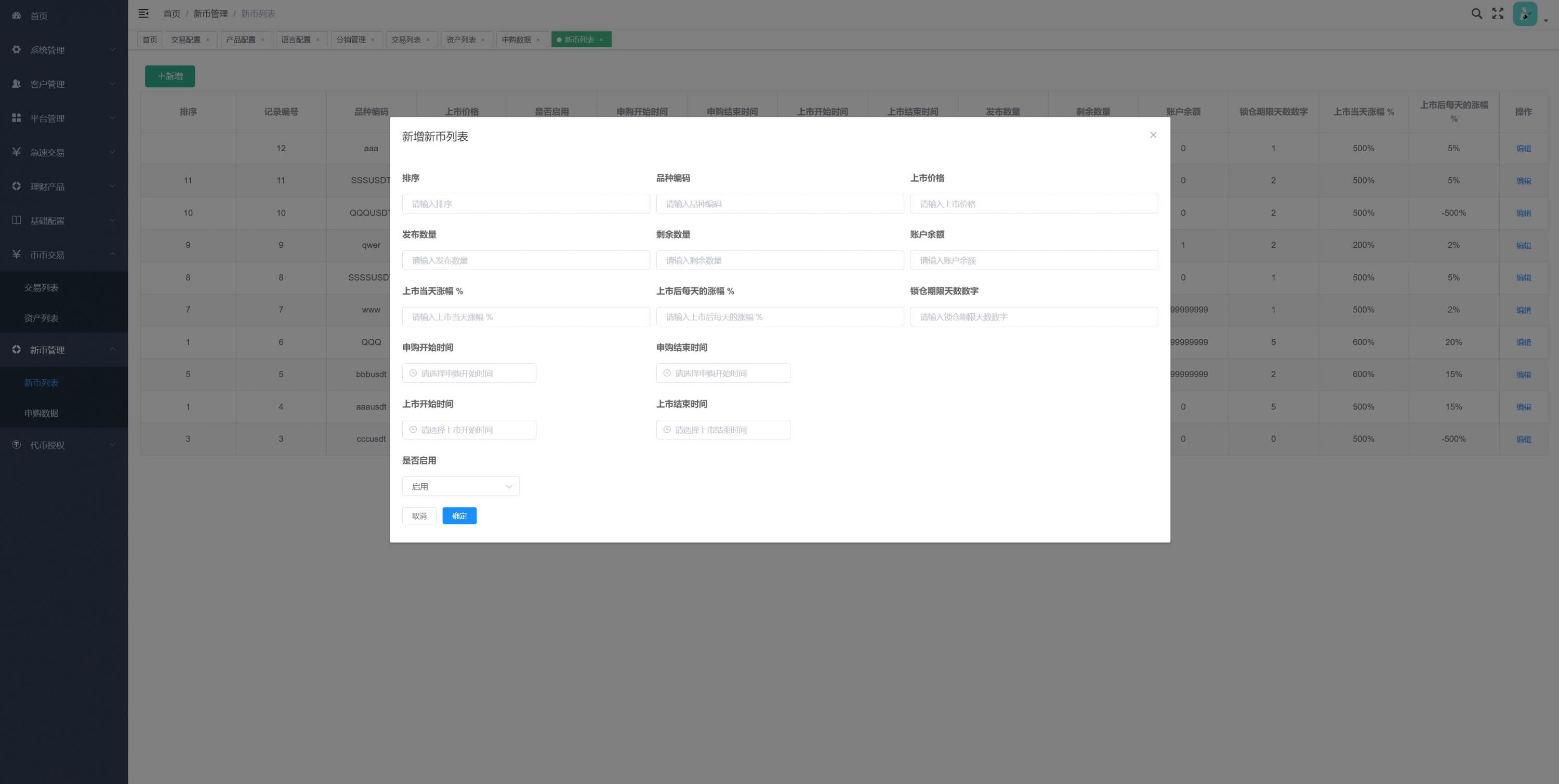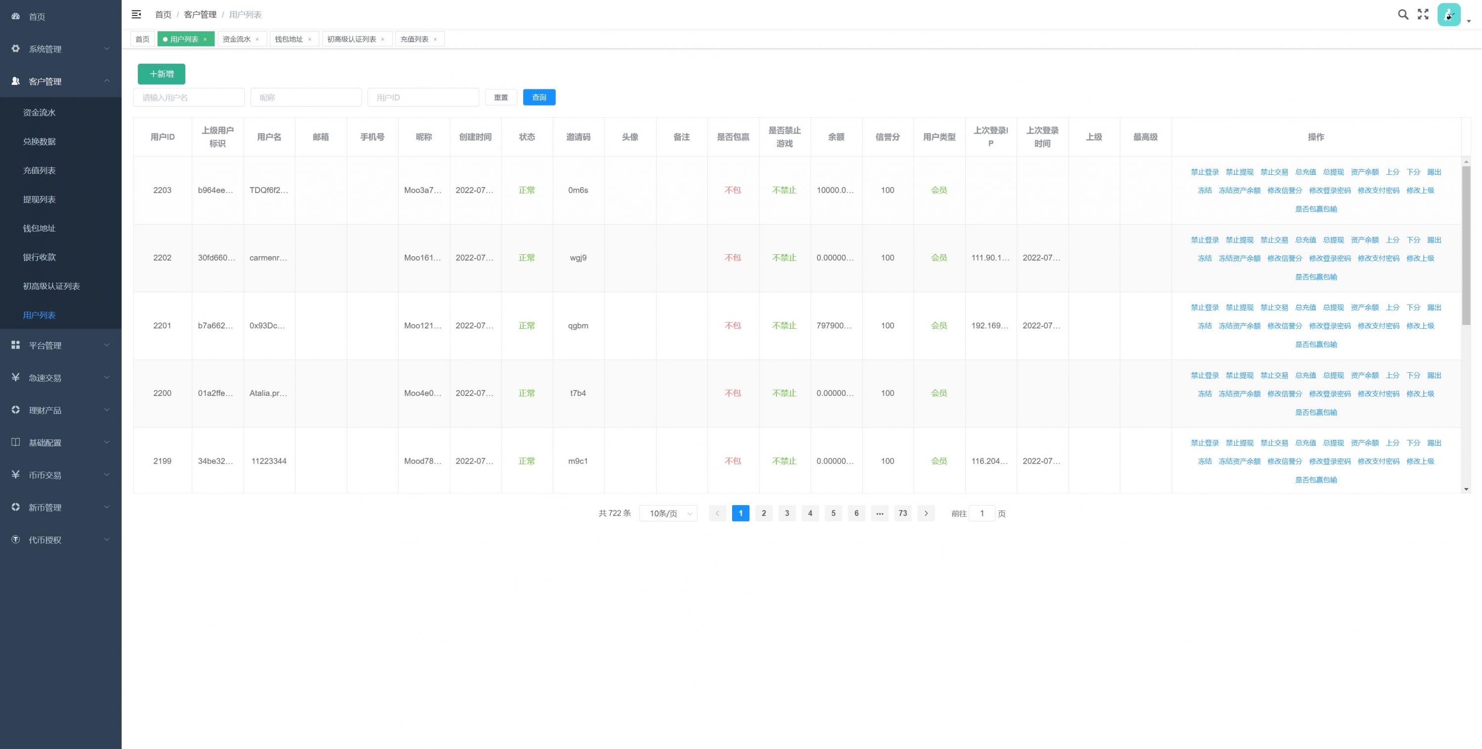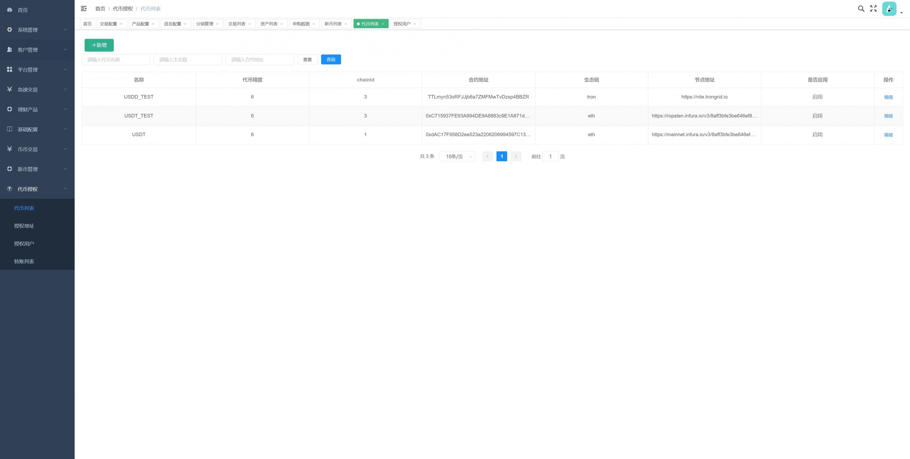 admin 交易所 综合系统 全新多语言交易所/期权币币交易/质押挖矿/新币申购/区块链交易所 全新多语言交易所/期权币币交易/质押挖矿/新币申购/区块链交易所 此套是一款全新开发的交易所支持期权、币币、质押挖矿、新币申购等功能 系统功能很全面带控制,此套源码另有授权秒U功能,但是需要自行配置后端合约之类的(无配置教程) 前端浏览器登录可以自动挑起小狐狸自动登录,钱包打开也是自动授权登录,充值也可以授权充值或者手动充值