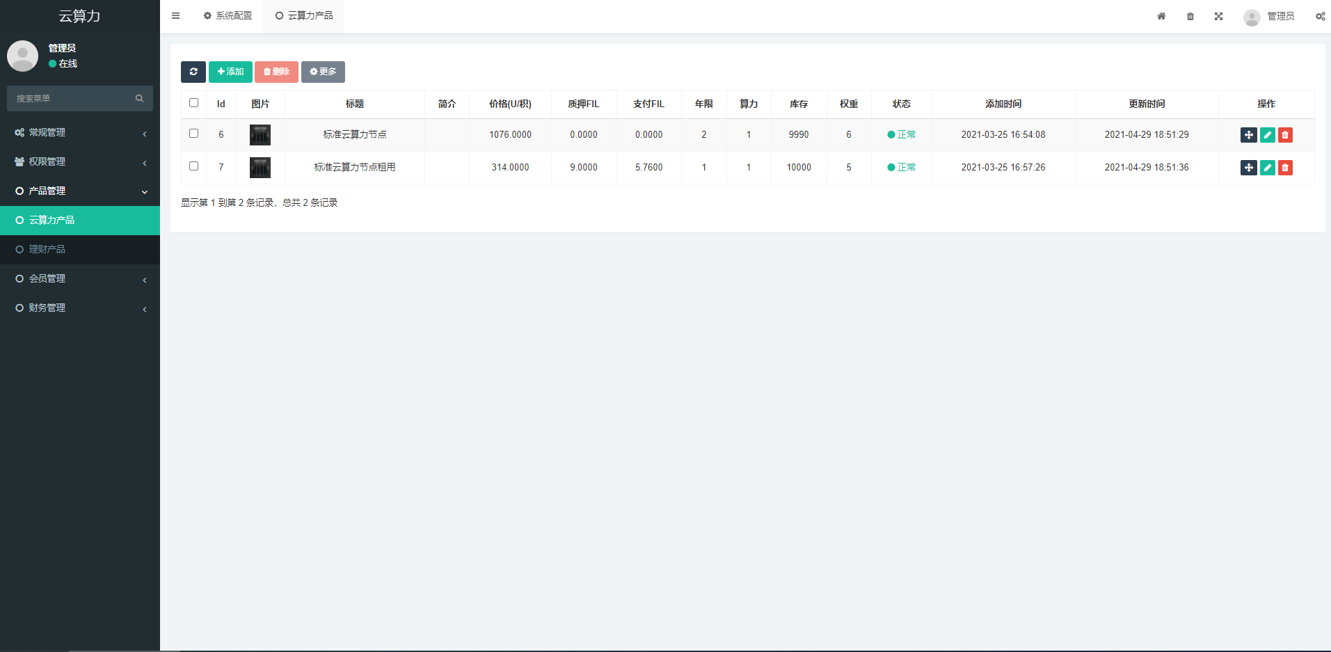 admin 综合系统 矿机系统/云算力矿机/挖矿系统/ipfs虚拟币挖矿 前端为APP源码,需要用apicloud搞成APP 后台自行添加售卖矿机/云算力 参数和收益比率和详情说明 自动设置矿机/算力每T收益 后台可添加理财产品 设置收益率 数量 天数 有合伙人分销功能 不同等级合伙人佣金比例设置 推奖励比间推奖励比团队奖励比平级奖励比 首页已对接全网算力 咨询页 推奖励、间推奖、团队奖、平级奖比例设置