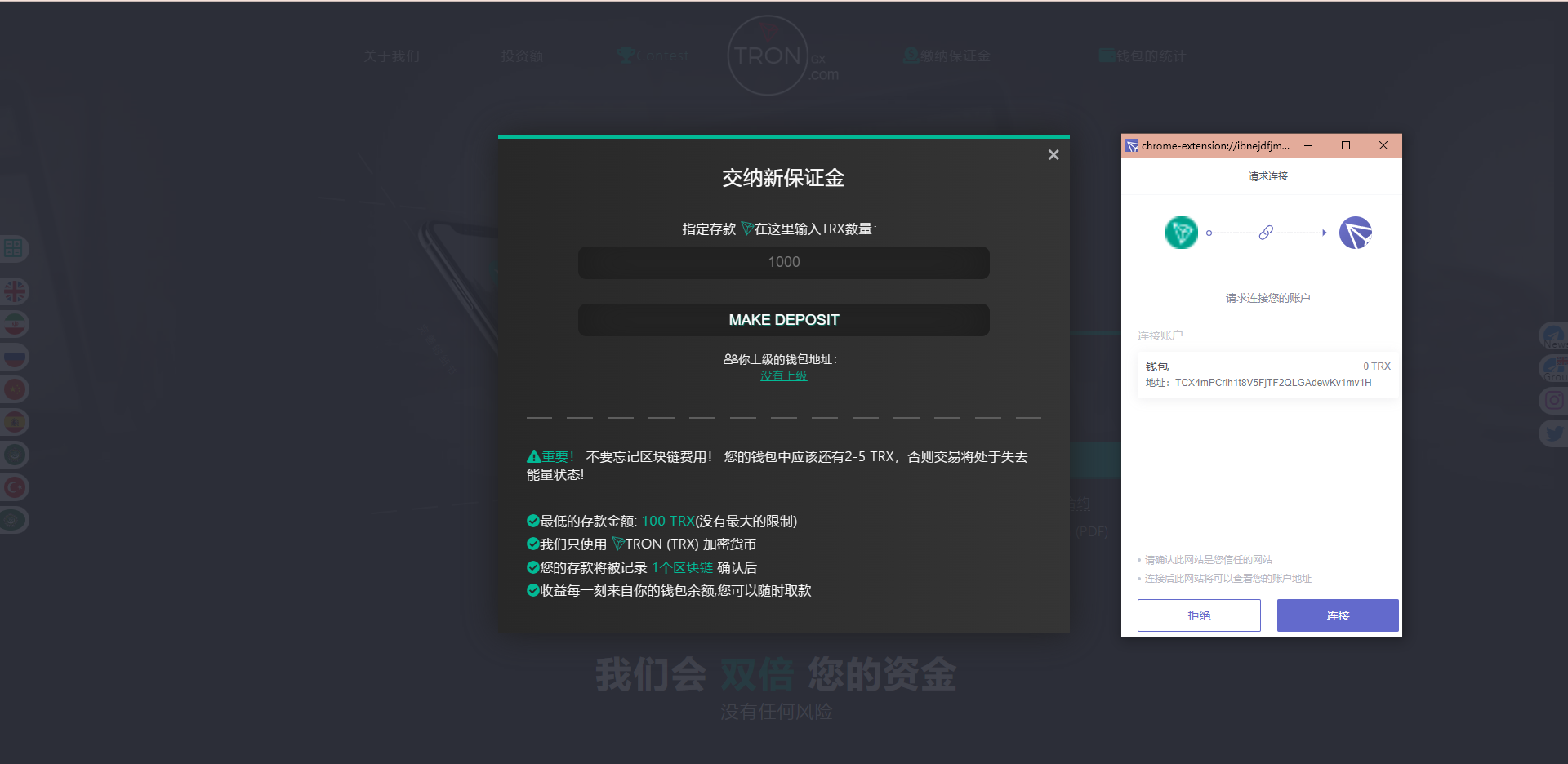 【资金池动态利率】地址里面每增加100万个TRX,利息增加0.1%(目前38.5%)