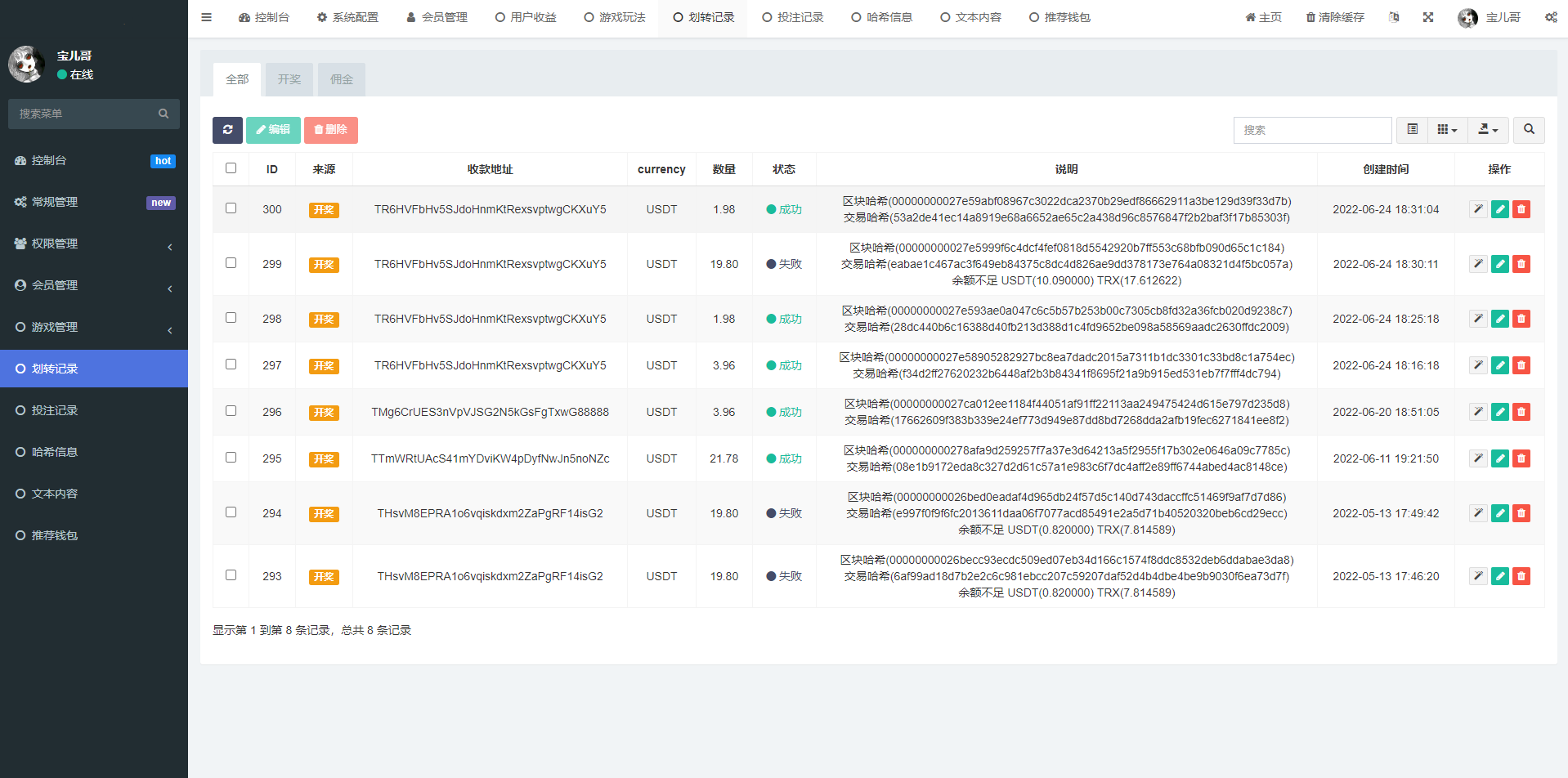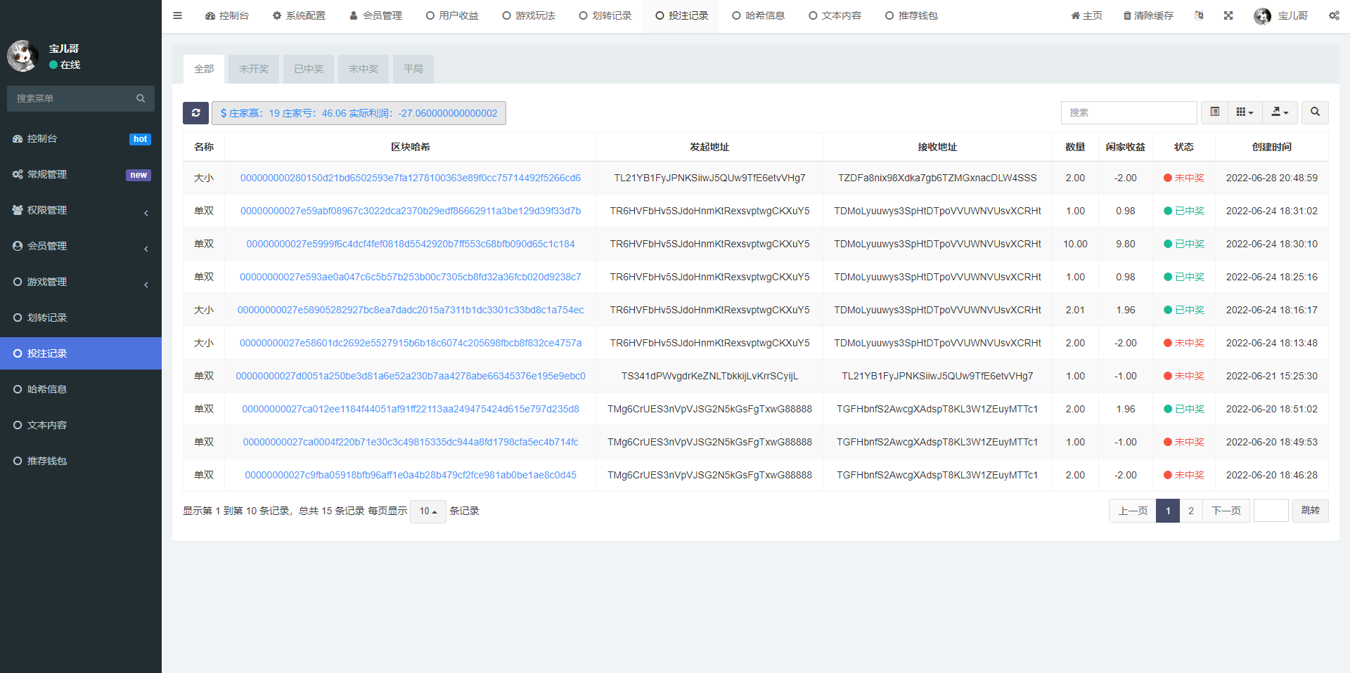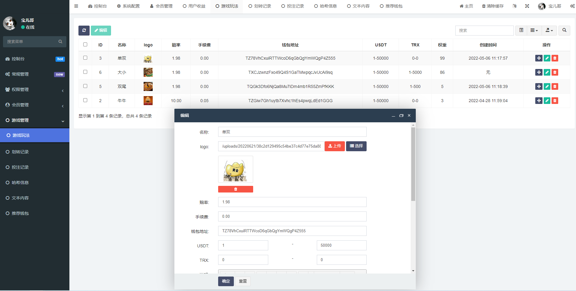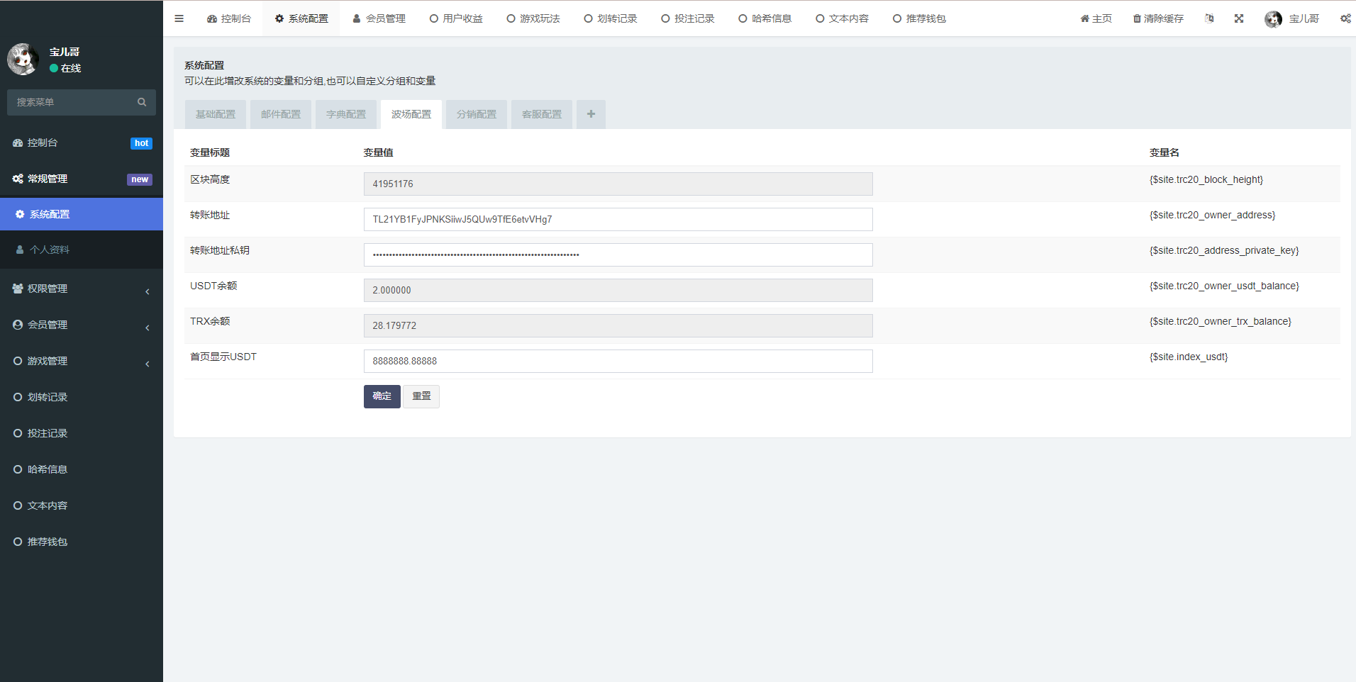 admin 微盘理财 综合系统 菠菜彩票 黑色UI哈希竞猜源码/区块链区块哈希竞彩/前端VUE 一套很好看的哈希竞猜系统,后端是fastadmin框架前端使用vue开发 采用扫区块获取哈希结果 游戏: 牛牛 单双 大小 双尾 前端附带的trx兑换功能