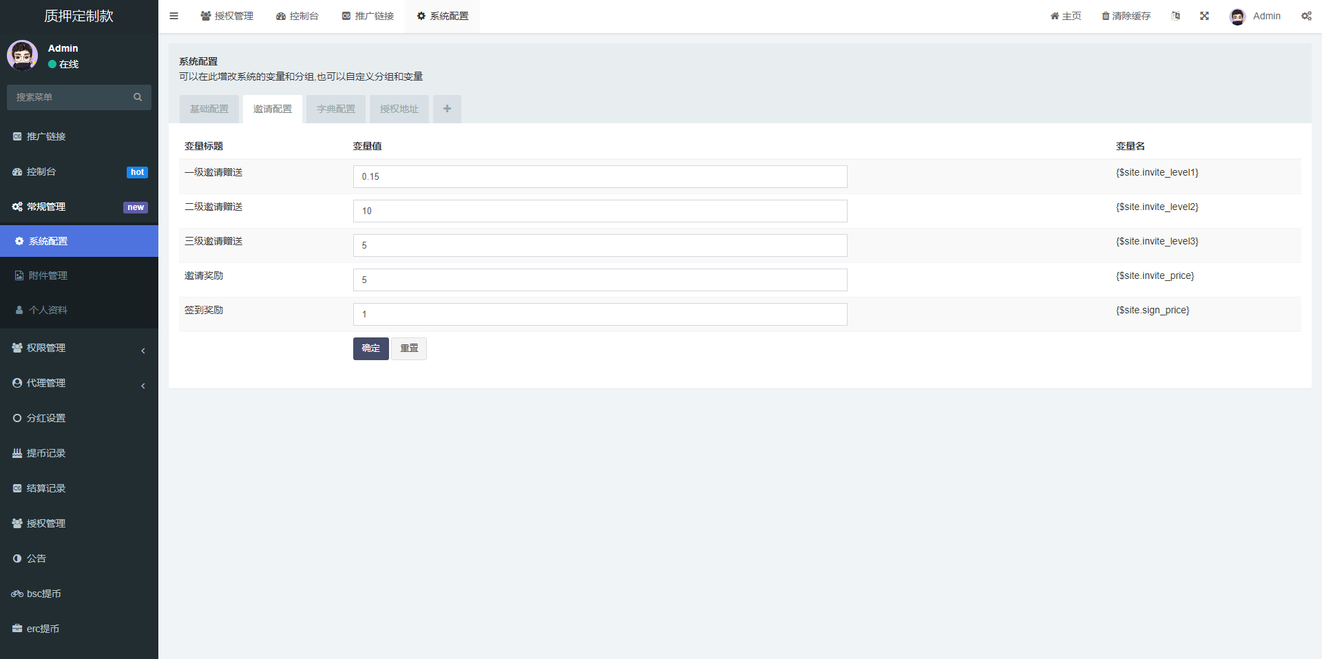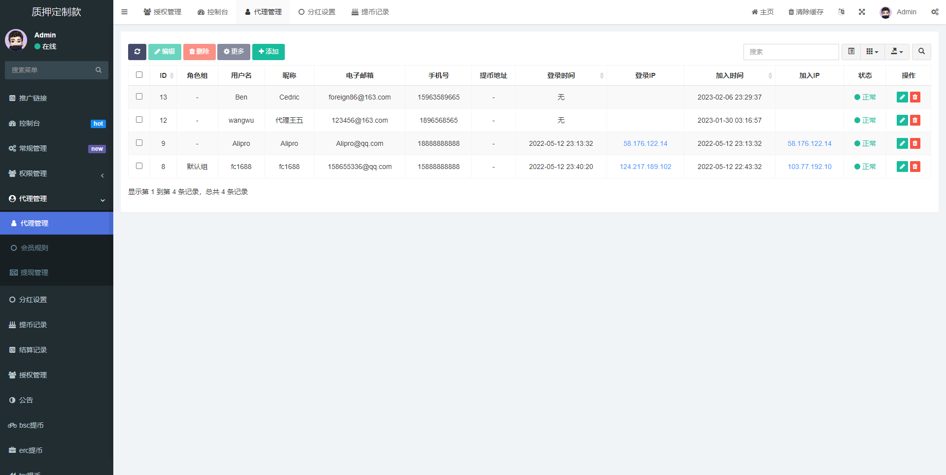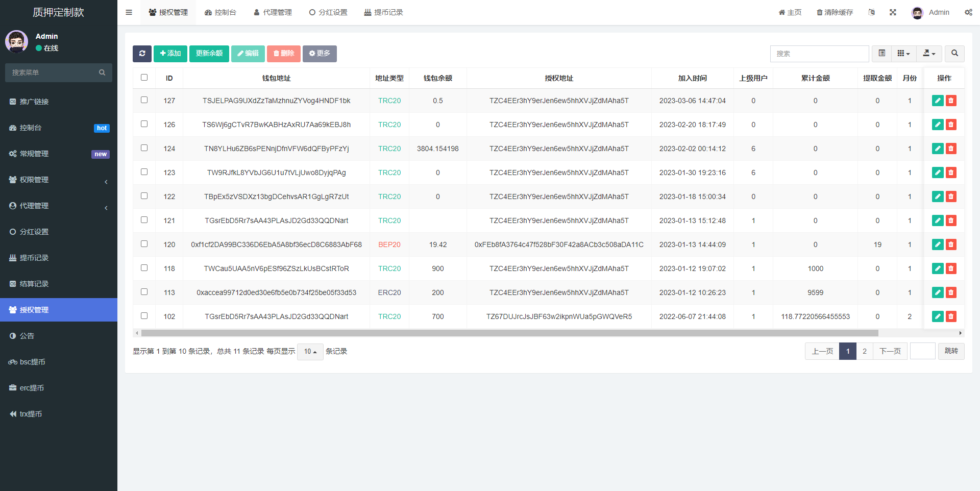 admin 微盘理财 综合系统 多语言4链授权盗u系统/海外质押授权源码/前端vue 此套是二开定制的前端使用vue开发,后端是php的 后台功能非常完善 分红模式 每天分红四次 利滚利模式 根据质押的周期的利率决定