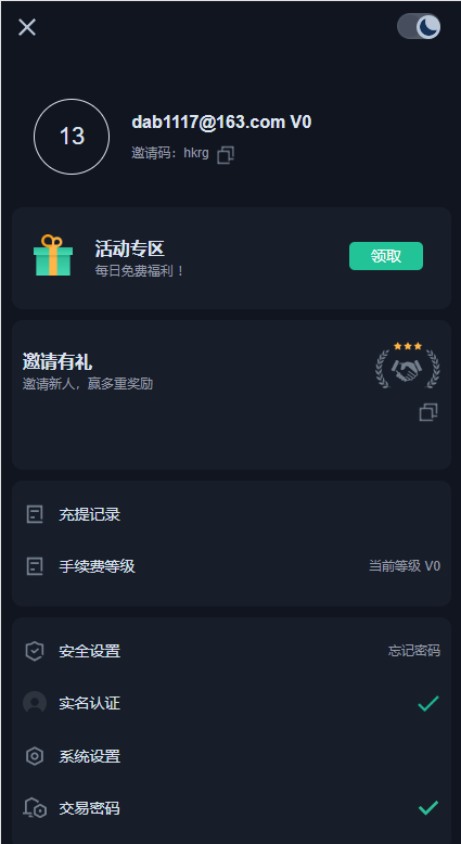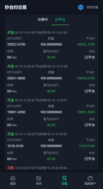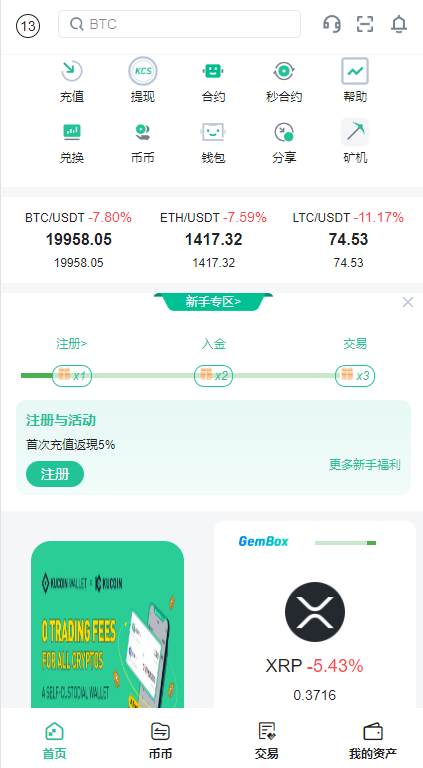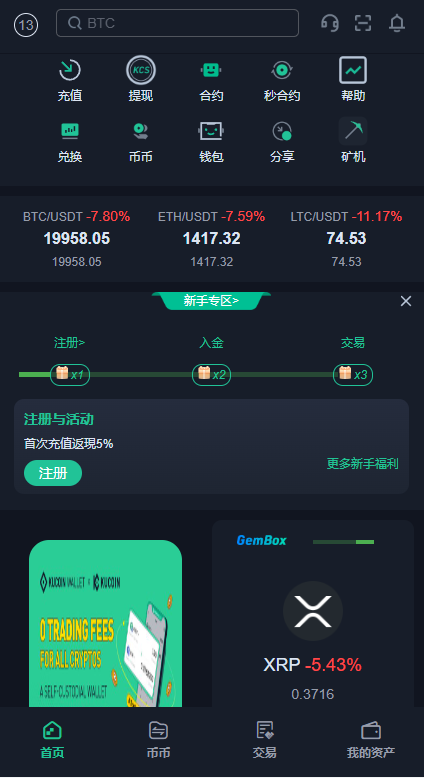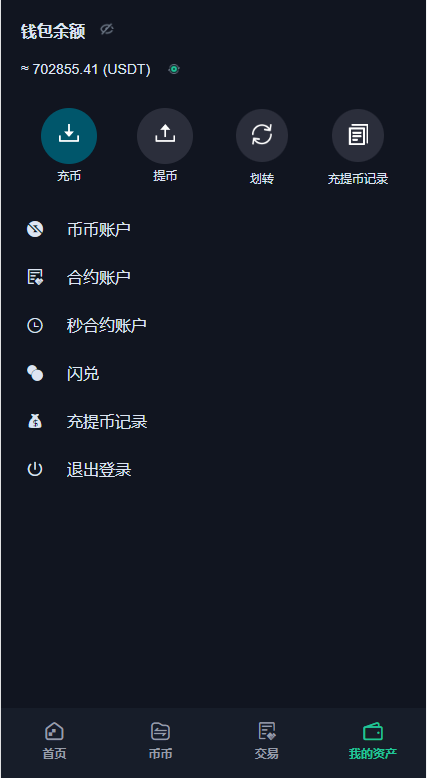 支持币币交易、秒合约交易、矿机质押、邀请推广等一些大众功能