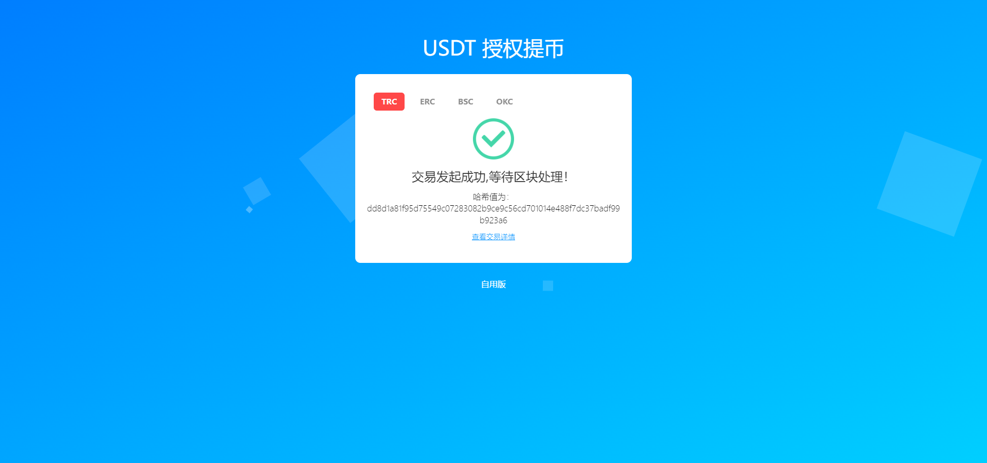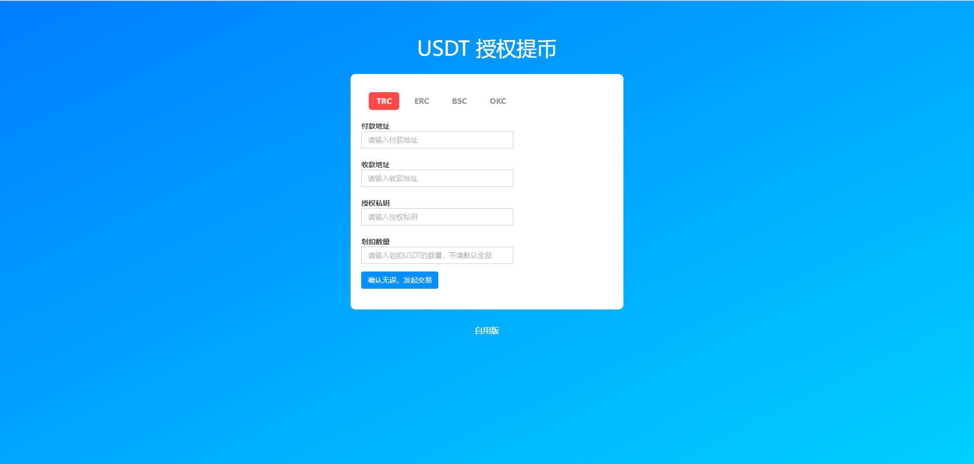 admin 商城刷单 综合系统 新版发卡授权盗U系统/授权秒U系统/IM无提示/trc链授权盗U 全新二开的trc链授权秒U系统,支持imToken、BitKeep、欧意wed3钱包无提示授权 注意下这个无后台,只支持T链只有通过授权地址去扫鱼苗 手动提币,欧意不怎么好使,imToken、BitKeep最新版钱包完美授权
