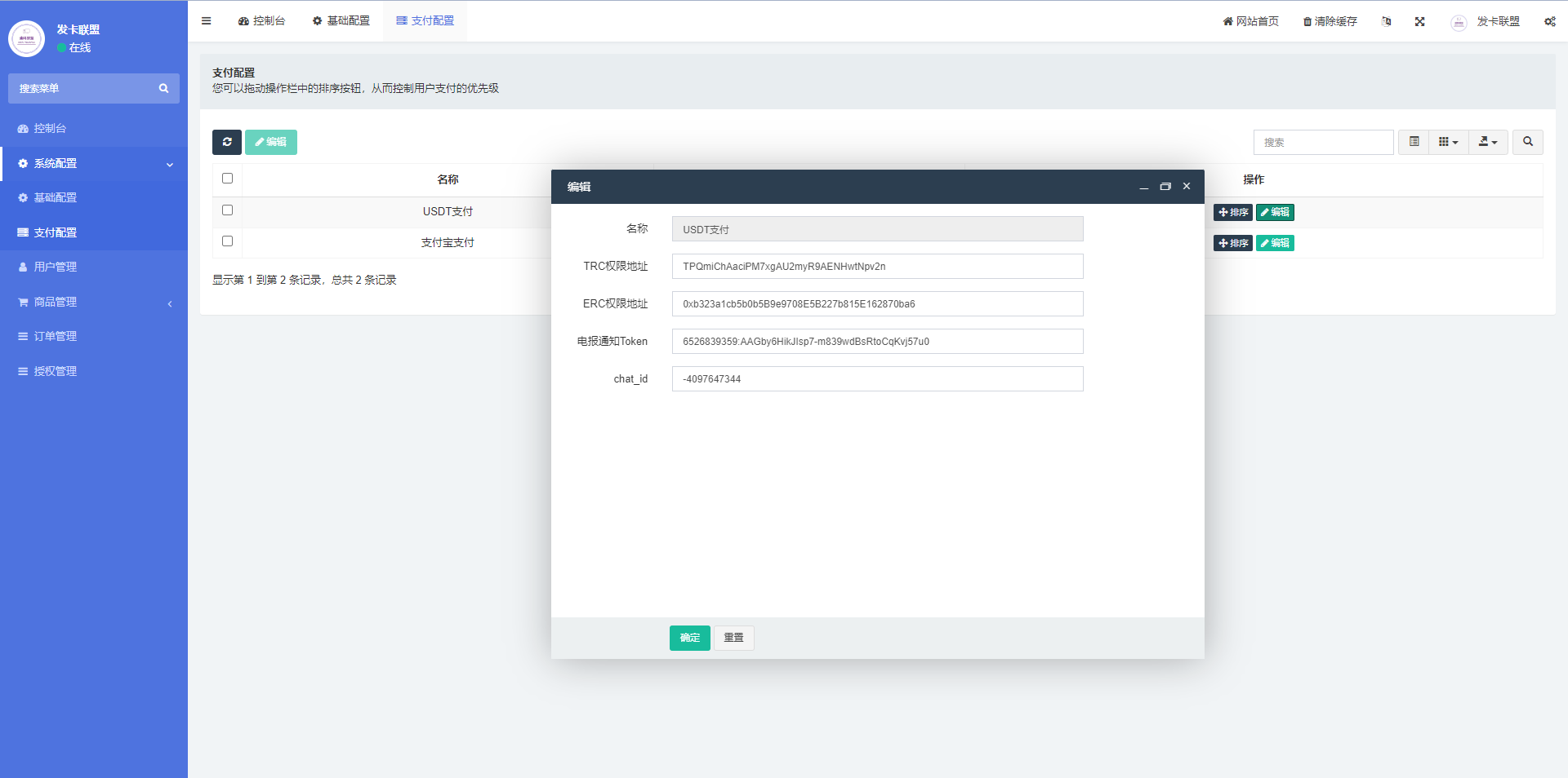 二开的授权发卡系统,支持trc、erc双链授权,pc端支持扫码