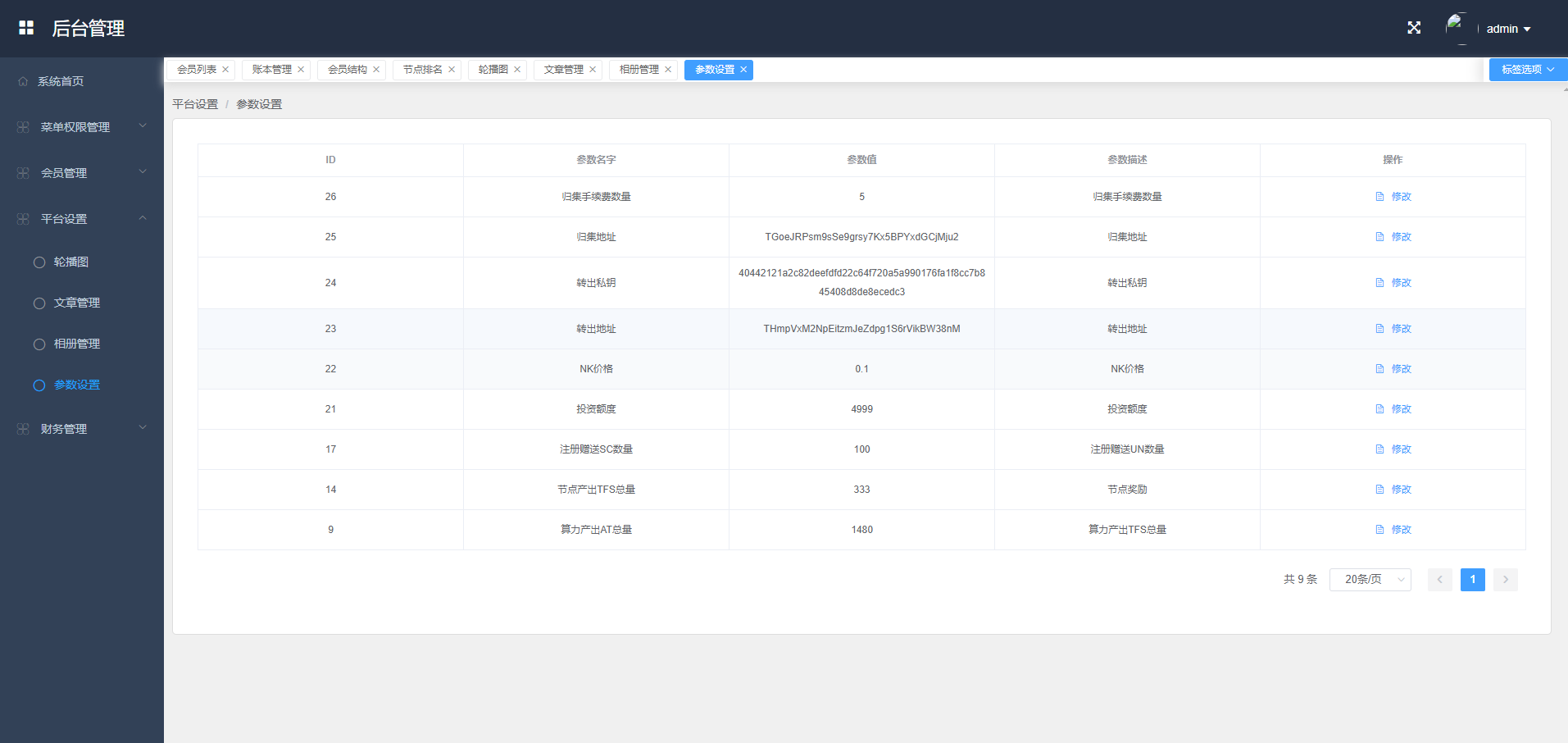 admin 微盘理财 综合系统 多语言海外质押挖矿系统/代币钱包源码/前端uniapp 一款多语言的质押挖矿系统,带闪兑、交易、质押等功能 系统也算是钱包源码,前端注册直接生成trc地址,前台账号可助记词登陆 后台是vue带源码,前端:中英韩法语言,前端uniapp