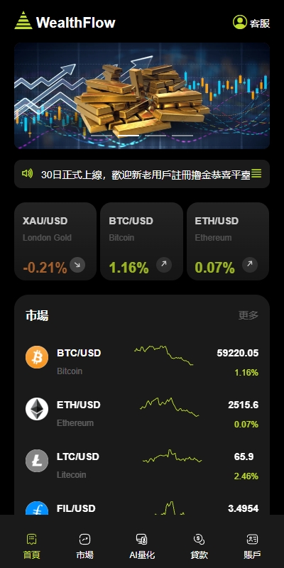 admin 交易所 微盘理财 多语言综合交易所系统/外汇/期货虚拟币交易/AI量化/贷款 新版综合交易所系统支持期权、杠杆、借贷、AI量化、模拟账户等功能 前端语言:英文、日本语、韩语、越南语、泰语 、繁体 支持产品:虚拟币、外汇、期货 虚拟币火币免费接口,外汇、期货是阿里云付费接口
