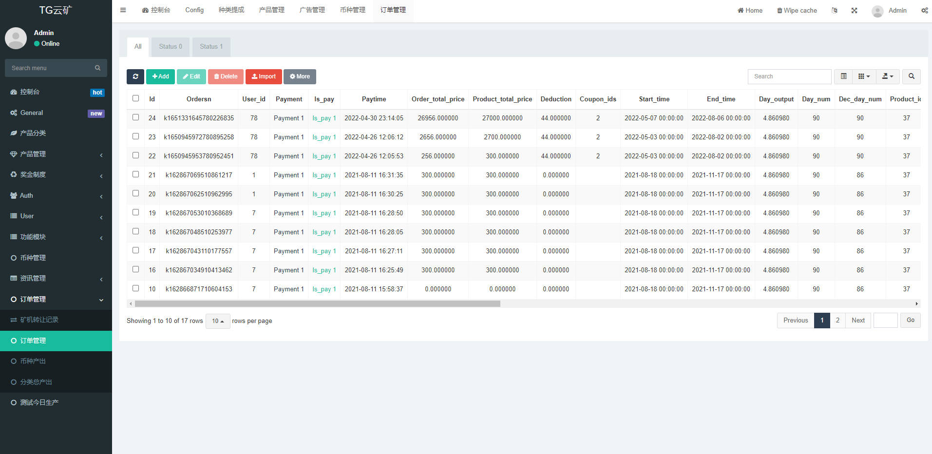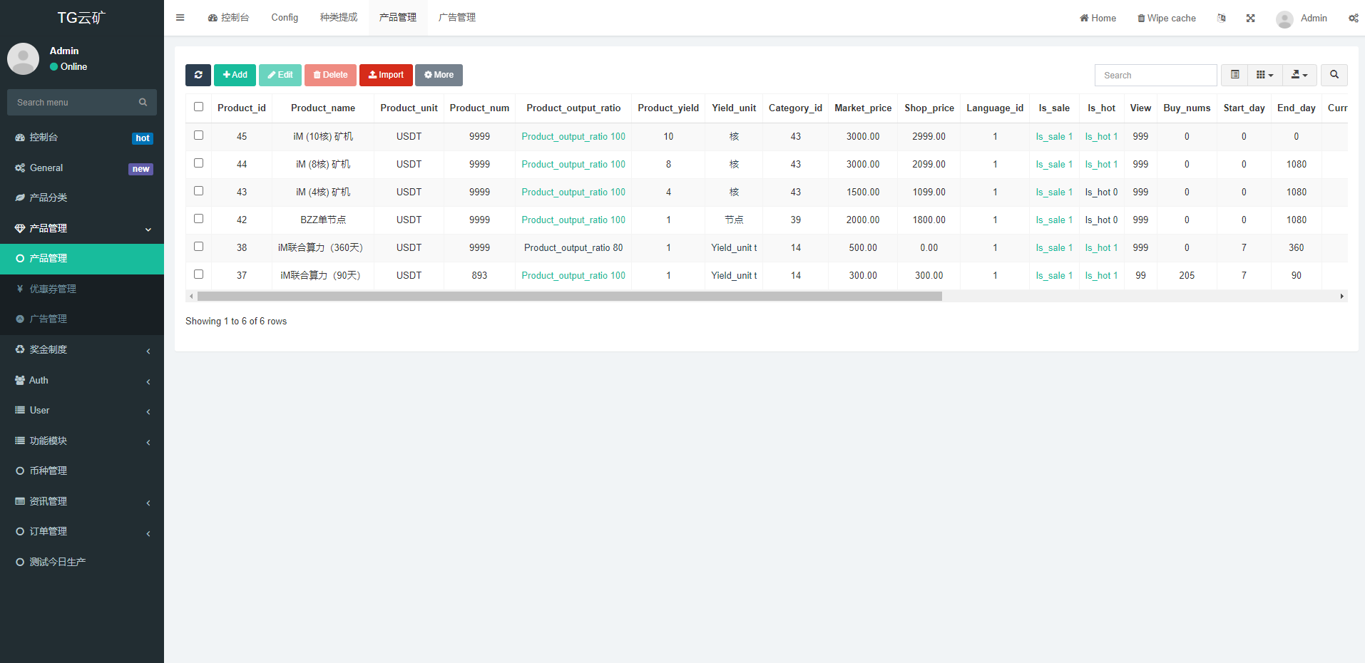 admin 微盘理财 综合系统 双语言矿机系统/挖矿投资系统/云矿机算力/usdt投资/区块链 双语言矿机系统/挖矿投资系统/云矿机算力/usdt投资/区块链源代码 双语言的矿机投资系统,usdt在线充值,云算力投资获取收益,矿机可以用户相互转送,系统附带聊天系统