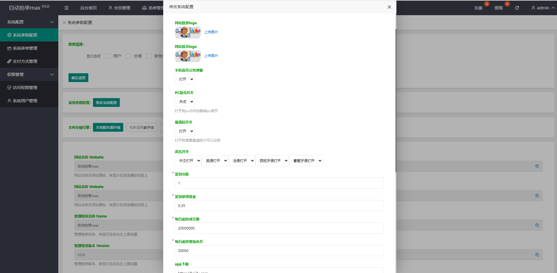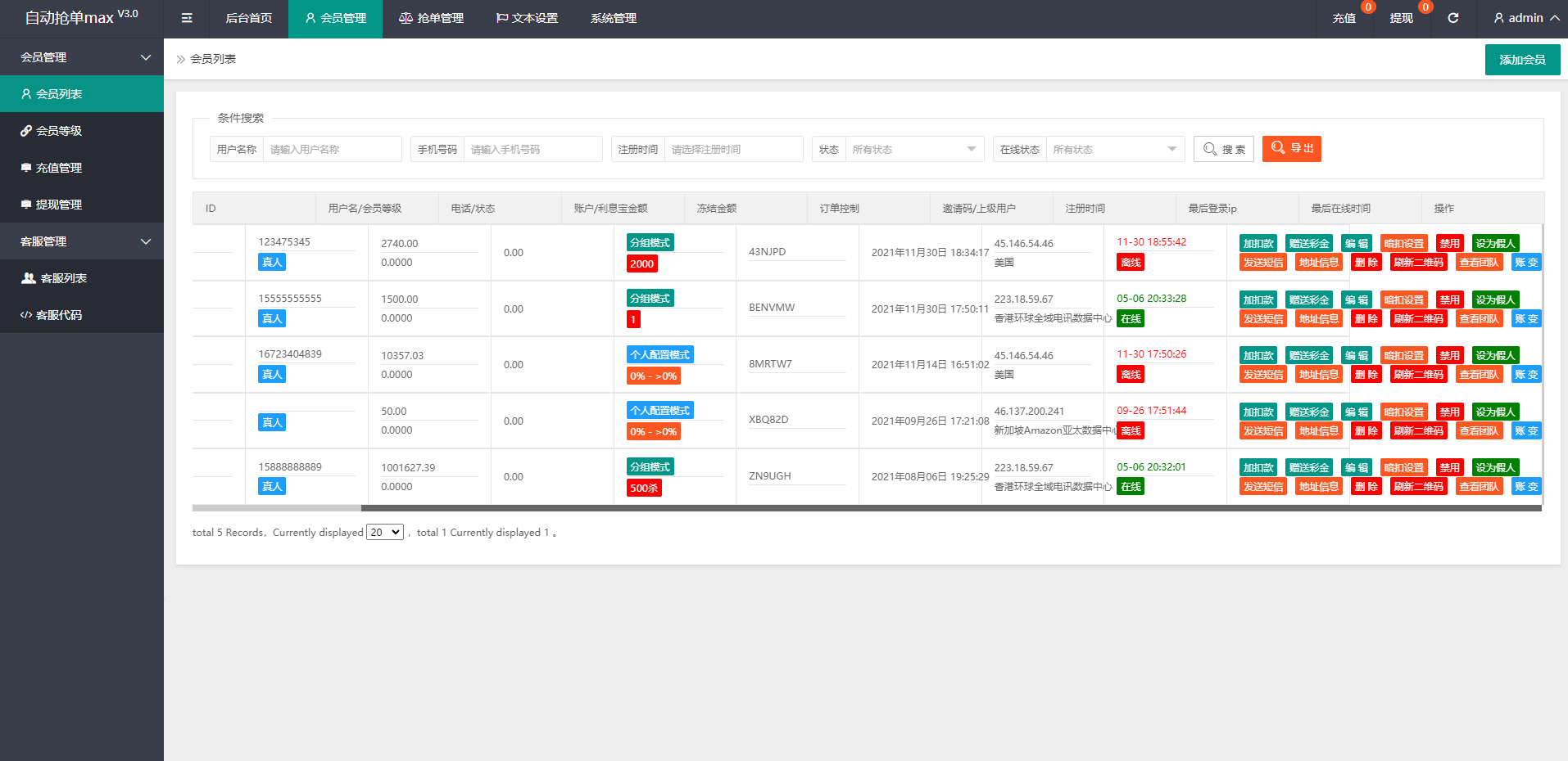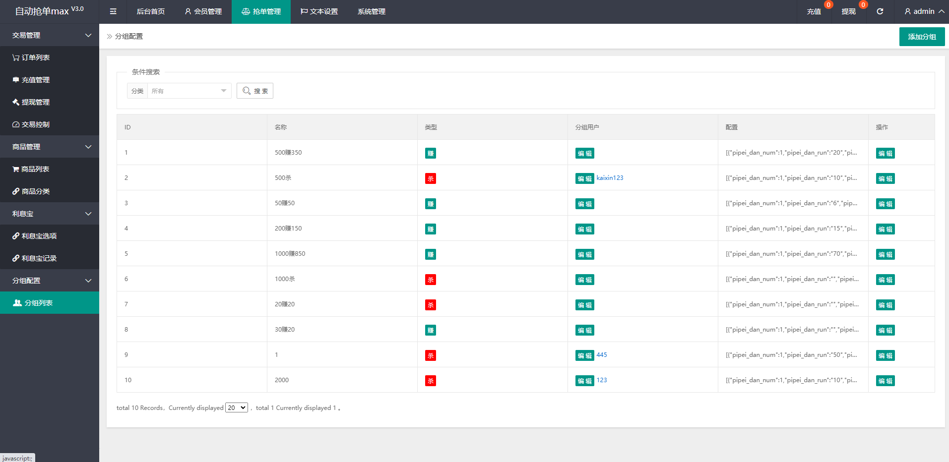 admin 商城刷单 综合系统 全新二开UI海外版多语言亚马逊抢单系统/自动抢单刷单/分组杀系统 全新二开UI海外版多语言亚马逊抢单系统/自动抢单刷单/分组杀系统 系统全新二开了前端UI,新增语言中文、英语、法语、西班牙语、葡萄牙语(支持二开增加其他语言) 全新新增超完整的分组杀功能