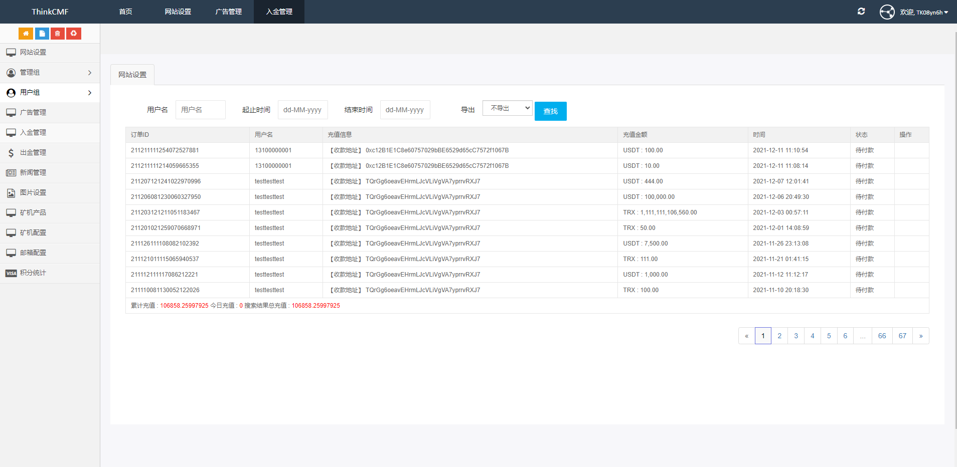TRX波场币投资系统,四国语言,USDT充值