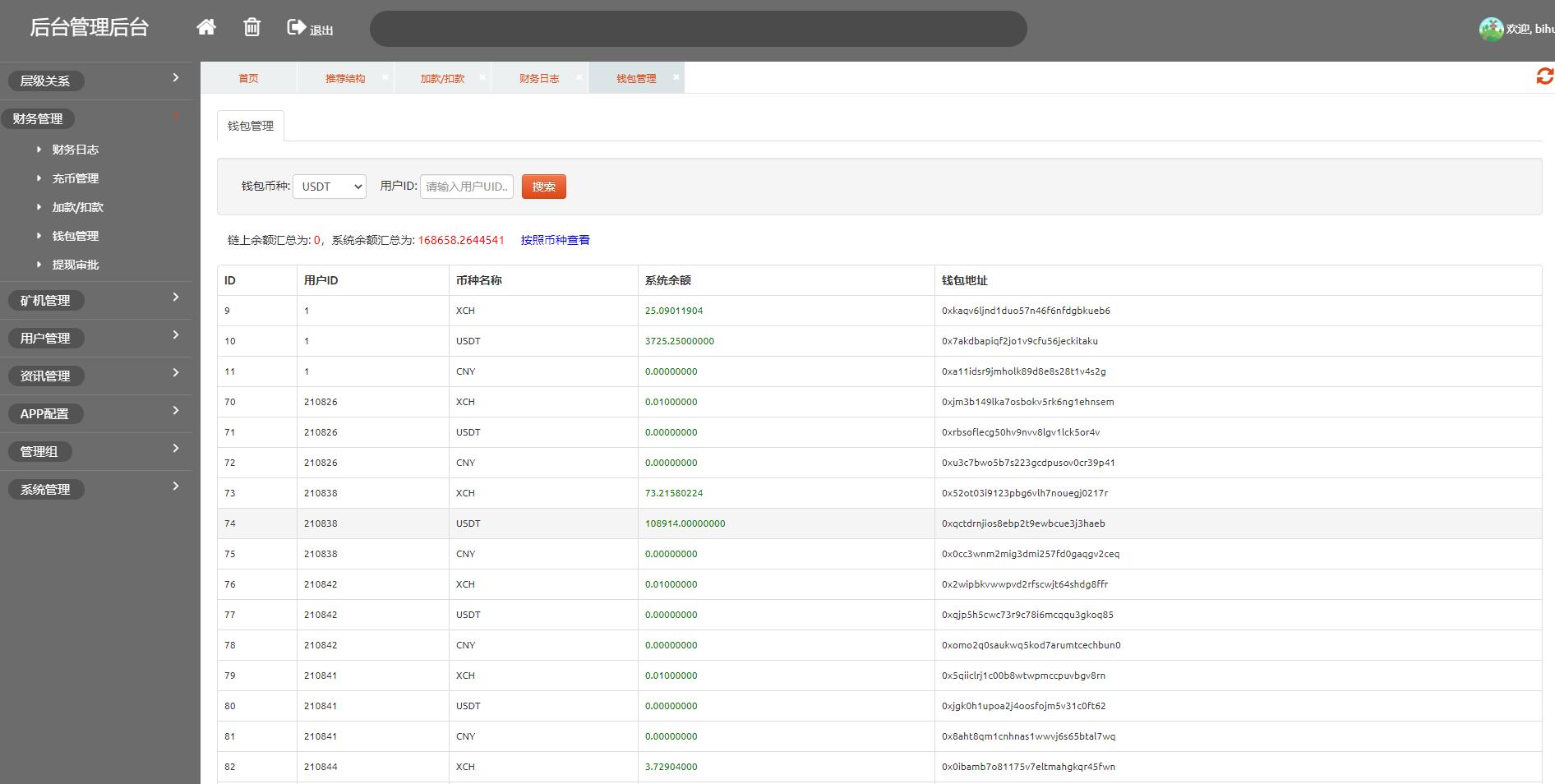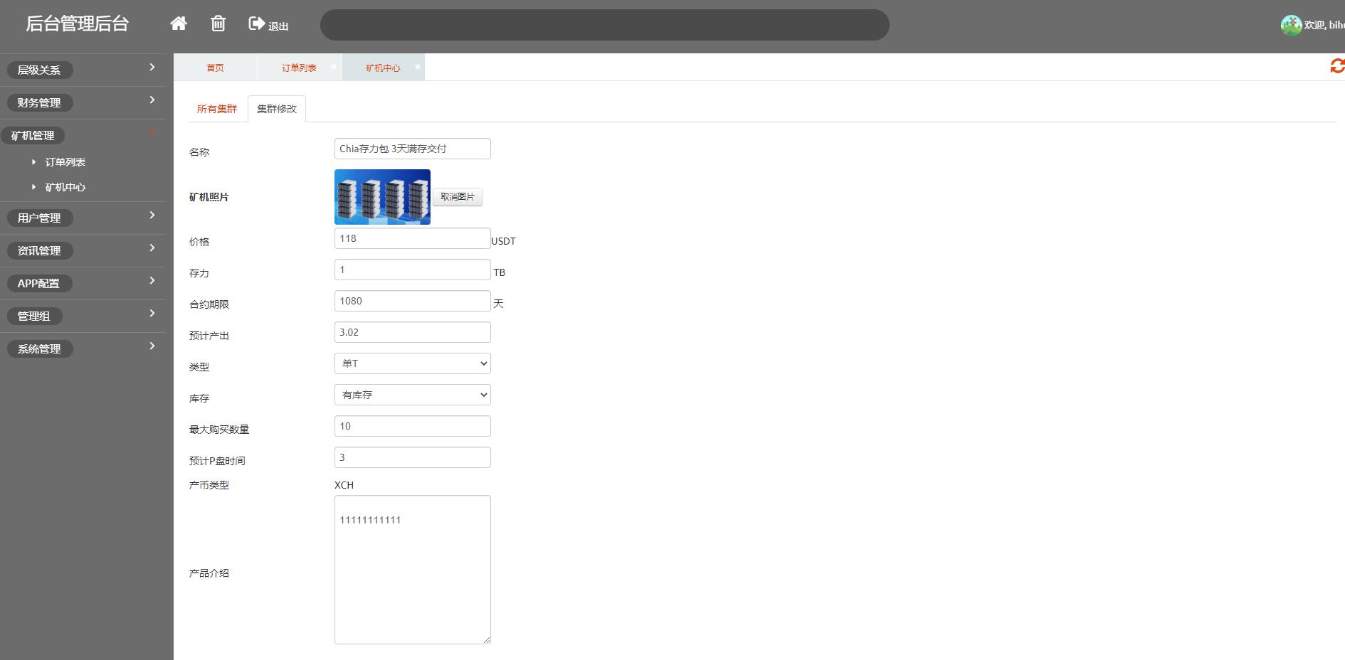 7、后台可管理会员信息、矿机信息、奖励信息