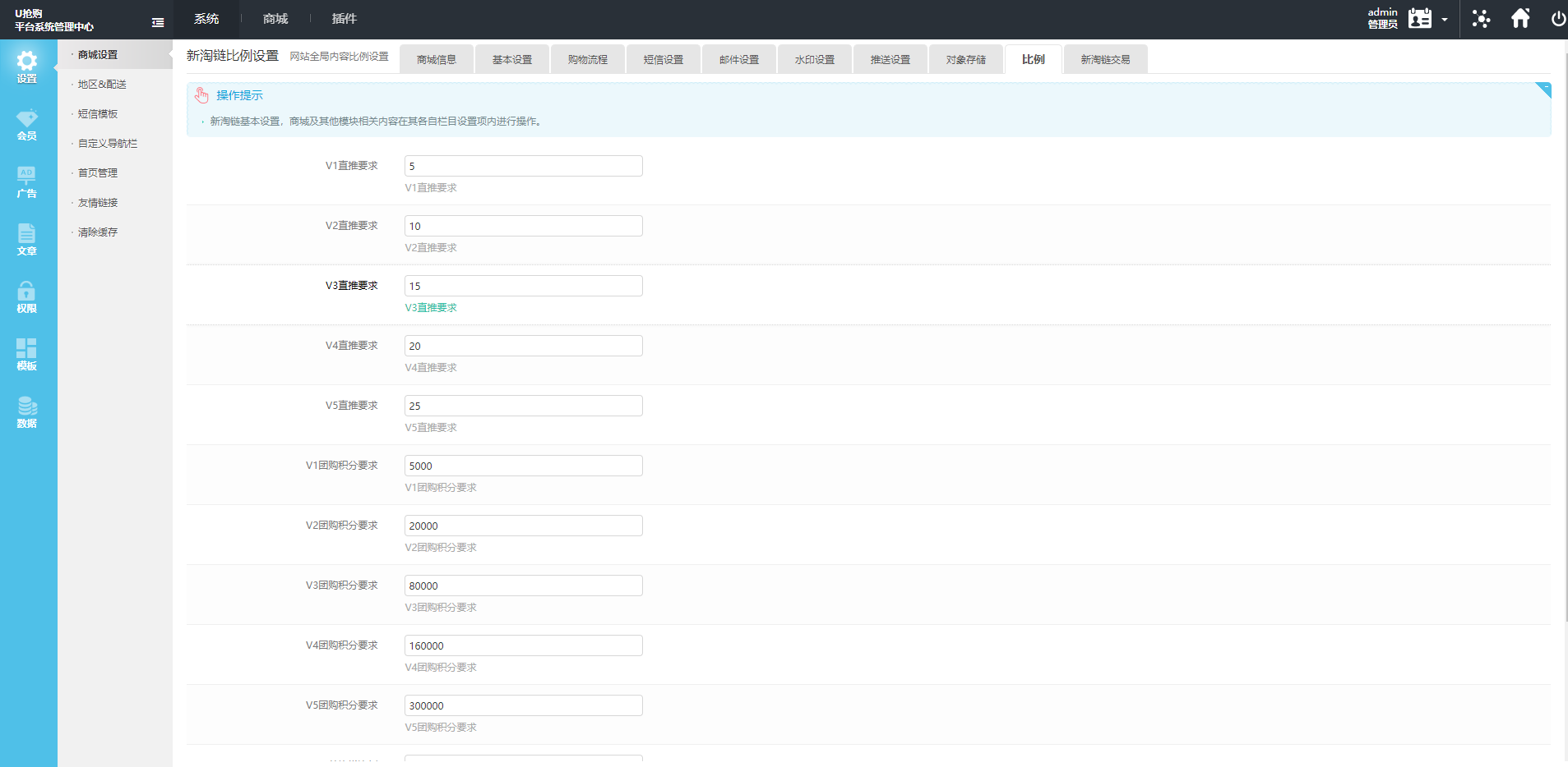 举例:(以第七期团购积分额度失败举例)第七期所有玩家投入的积分和预约劵全额退回第六期所有玩家投入的积分 70%的积分退回+10%预约劵+20%购物券。在第七期团购失败后 从一期重新开始参与团购第六期与第七期的所有用户自动优先预约排队进入团购结算周期:团购成功后进2期结算1期。完成第2期奖励第1期本金加12%积分。完成第3期奖励第2期本金加12%积分,以此类推。使用体验积分参与预约的会员体验积分预约成功扣除投入的体验积分数量,获得投入数量的12%积分 (收益不返还本金)体验积分预约失败后全额返还(体验积分)直推一人完成手机号码认证奖励100体验积分所有奖励都是级差制度 直推 动态 平级 团队总业绩V1 5人 1% 无 5千积分V2 10人 2% 2% 5万积分V3 15人 4% 3% 50万积分V4 20人 6% 4% 300万积分V5 25人 8% 5% 600万积分备注:玩家每期参与团购,需要使用积分+消耗2%的预约劵(预约劵与积分的价值是一样的)例如:100积分需要消耗掉2%的预约劵